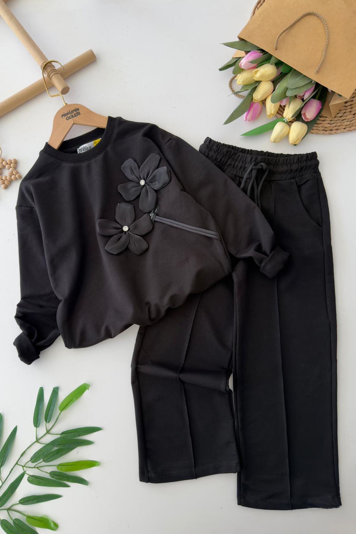 👗 Ürün Özellikleri: 🌺 3D çiçek aplikeleriyle modern ve göz alıcı bir tasarıma sahiptir. 🖤 Yumuşak ve esnek kumaşıyla gün boyu rahatlık sunar. 🎀 Geniş kesimli üst, konforlu pantolonla mükemmel bir uyum sağlar. 👧 Günlük kullanımda veya özel günlerde şık bir alternatif olarak tercih edilebilir. 🌿 Nefes alabilen yapısı sayesinde dört mevsim rahat kullanım imkânı sunar.