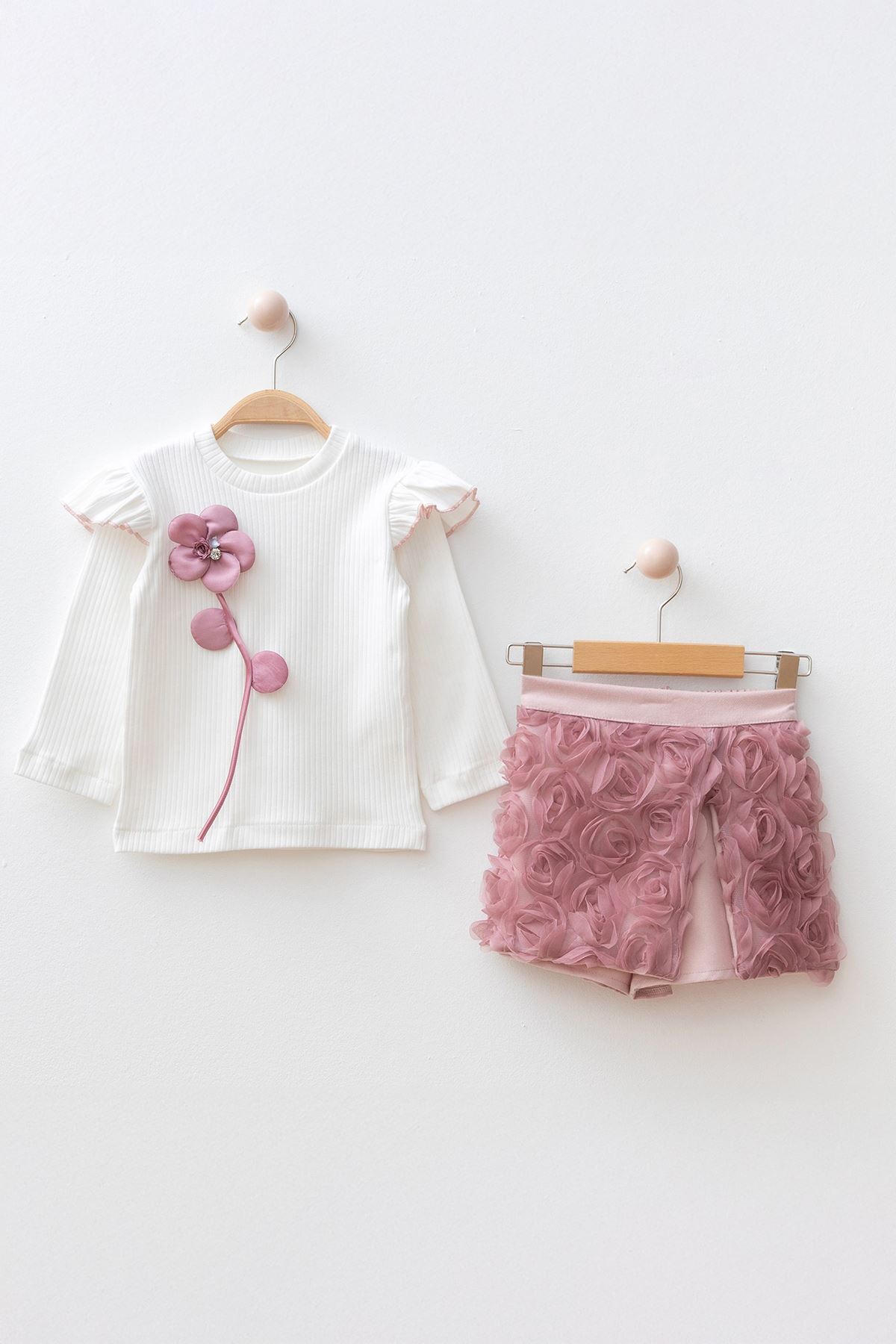 🌸 Miniğimin Cicileri 3D Gül Detaylı Kız Çocuk Şortetekli 2’li Takım