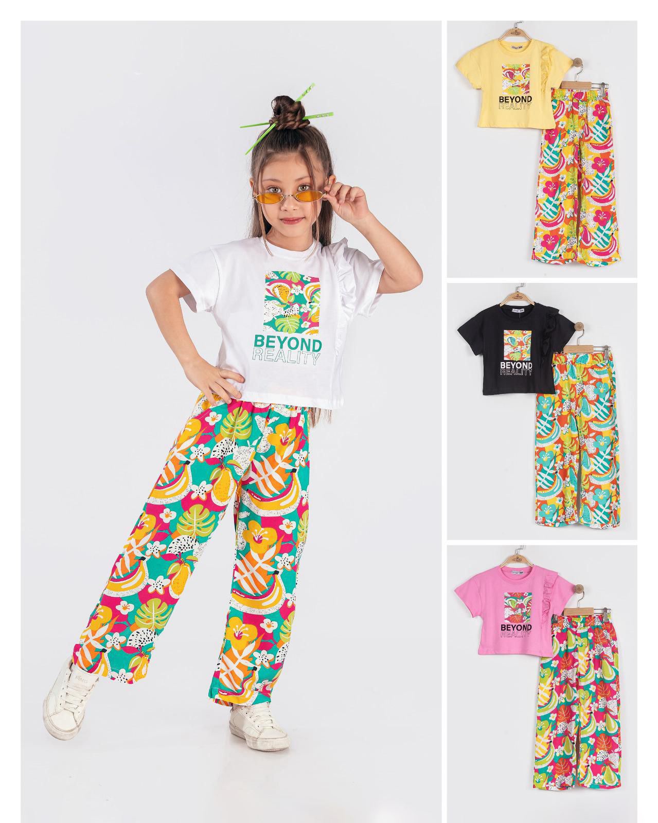 Bu "Beyond" baskılı kız çocuk takımı, çocukların yaz boyunca giymekten keyif alacakları bir parça olacak. Gerek günlük kullanım gerekse yaz tatillerinde, bu renkli ve rahat takım, miniklerin enerjisini ve stilini yansıtacak. Her bir renk seçeneği, yaz gardırobuna canlı bir dokunuş katarken, çocukların rahat etmesini ve stil sahibi görünmelerini sağlayacak.