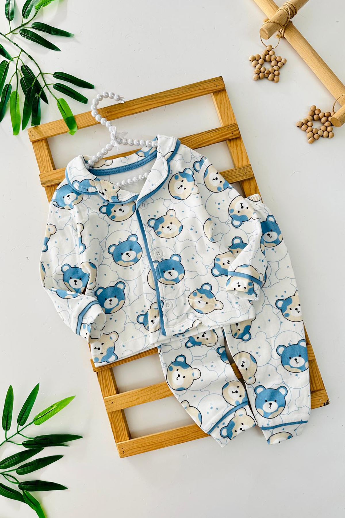 🧸 Miniğimin Cicileri Ayıcık Baskılı Penye Erkek Bebe Pijama Takımı