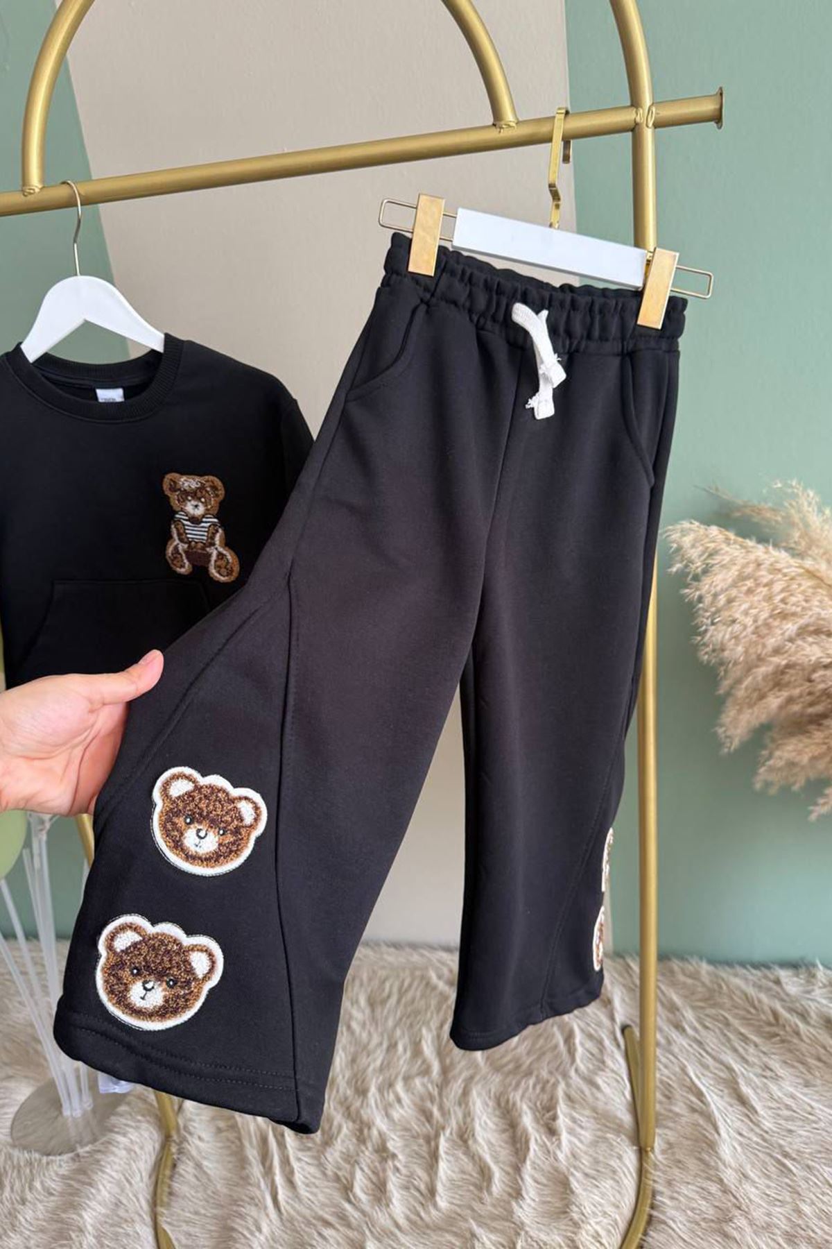Miniğimin Cicileri Ayıcık Panç Detaylı Kız Çocuk Takım - Siyah