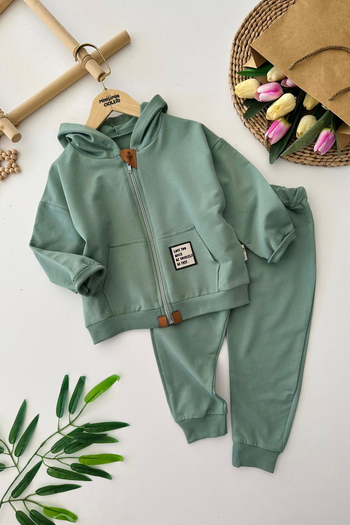 Miniğimin Cicileri Basic Kapüşonlu Erkek Çocuk 2 li Mevsimlik Takım - Yeşil