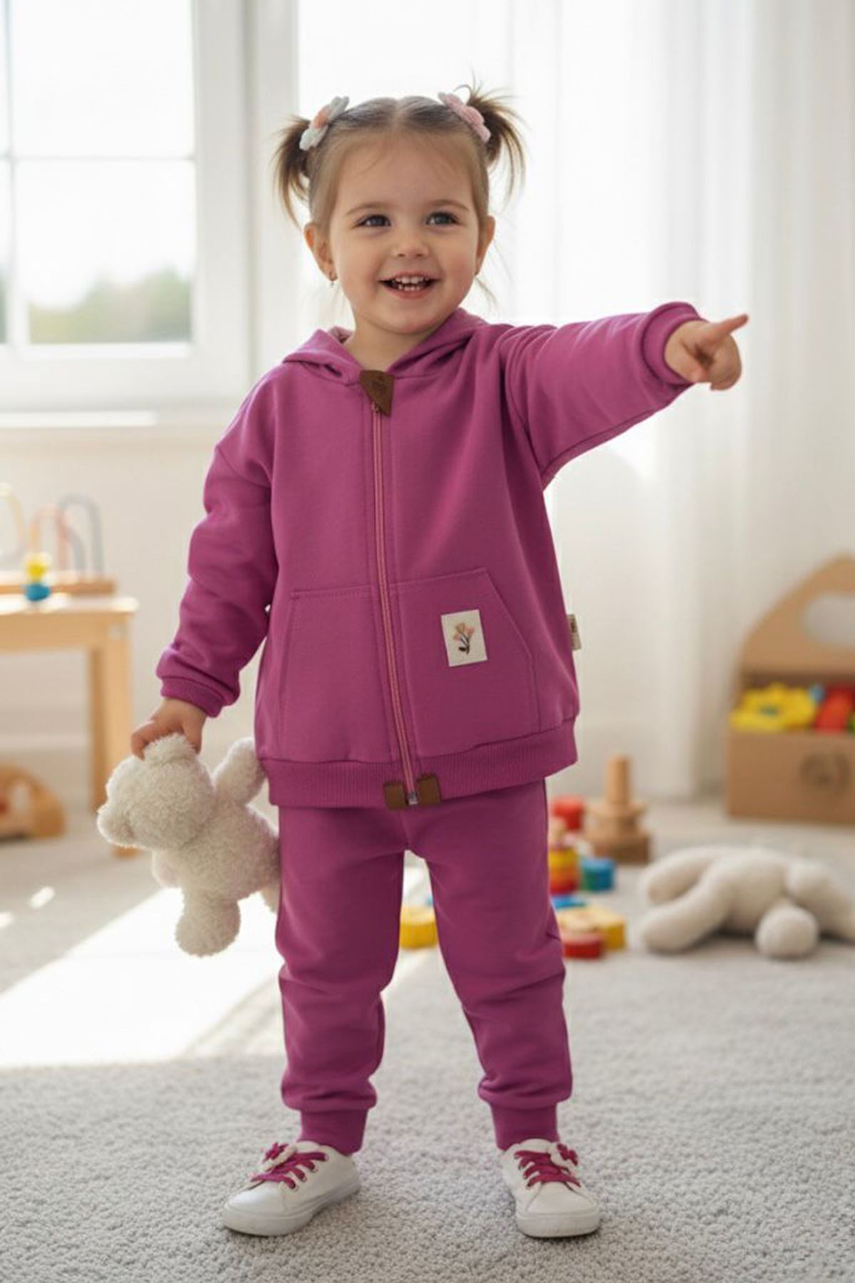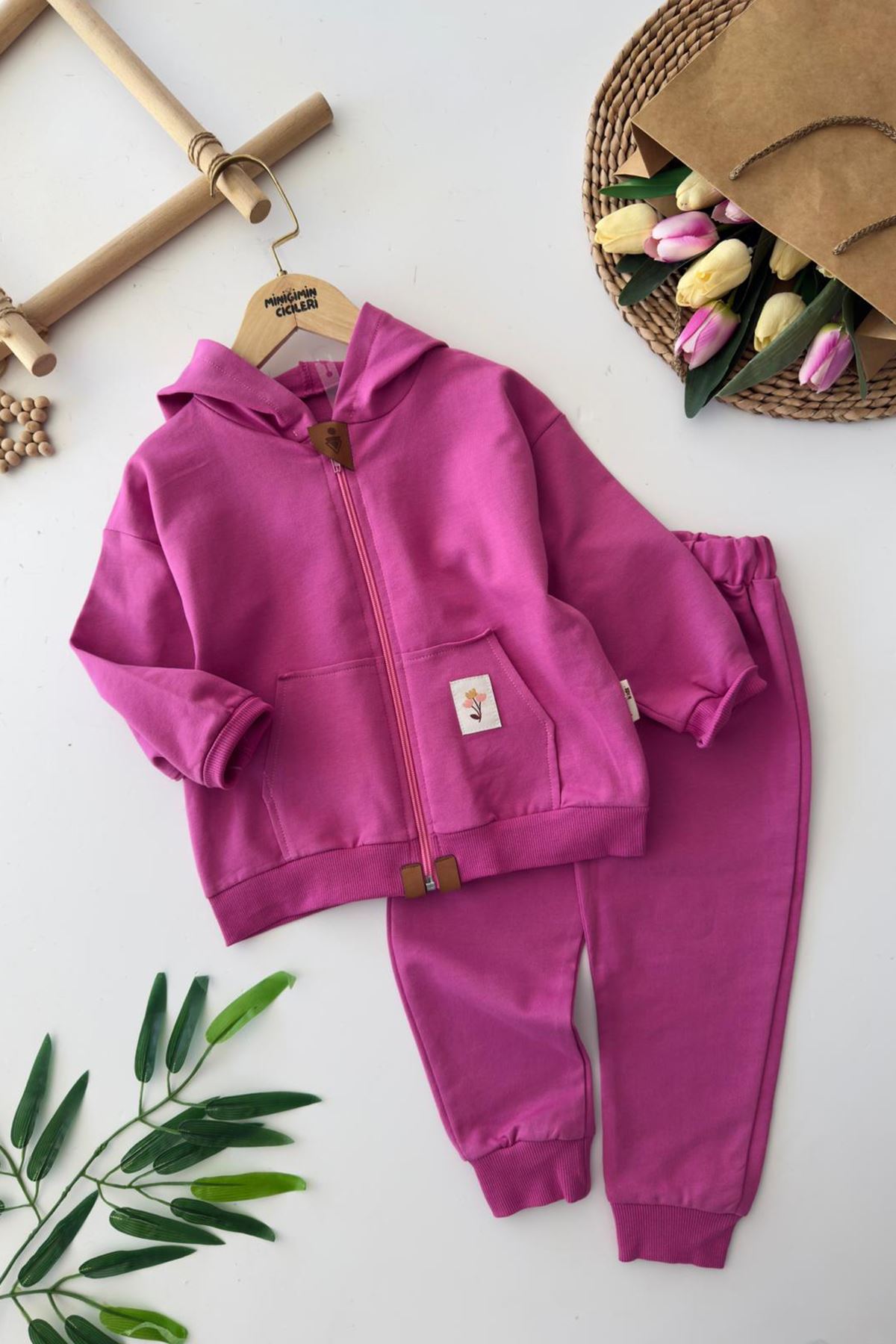 Miniğimin Cicileri Basic Kapüşonlu Kız Çocuk Çiçek Detaylı 2 li Mevsimlik Takım - Mor