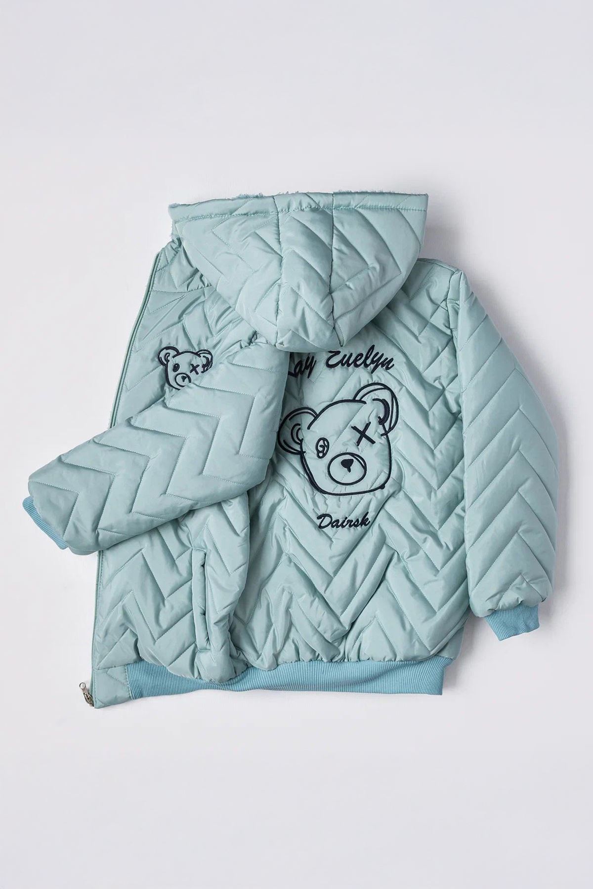 Minigimin Cicileri Bear Karakter Baskılı Erkek Çocuk İçi Welsoft Mevsimlik Mont - Su Yeşili