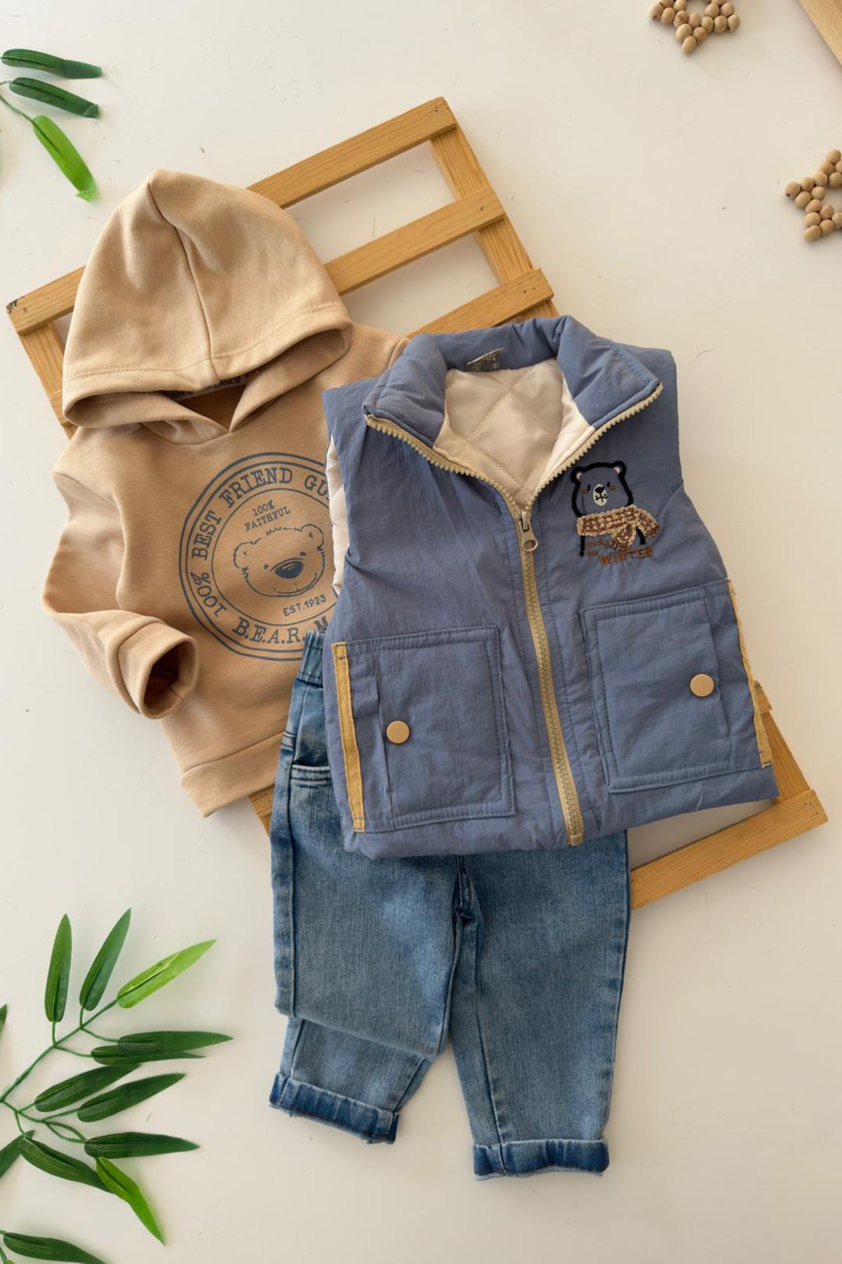 Miniğimin Cicileri Best Friend Ayıcık desenli Şişme Yelekli 3 lü Erkek  Çocuk Takım - Mavi