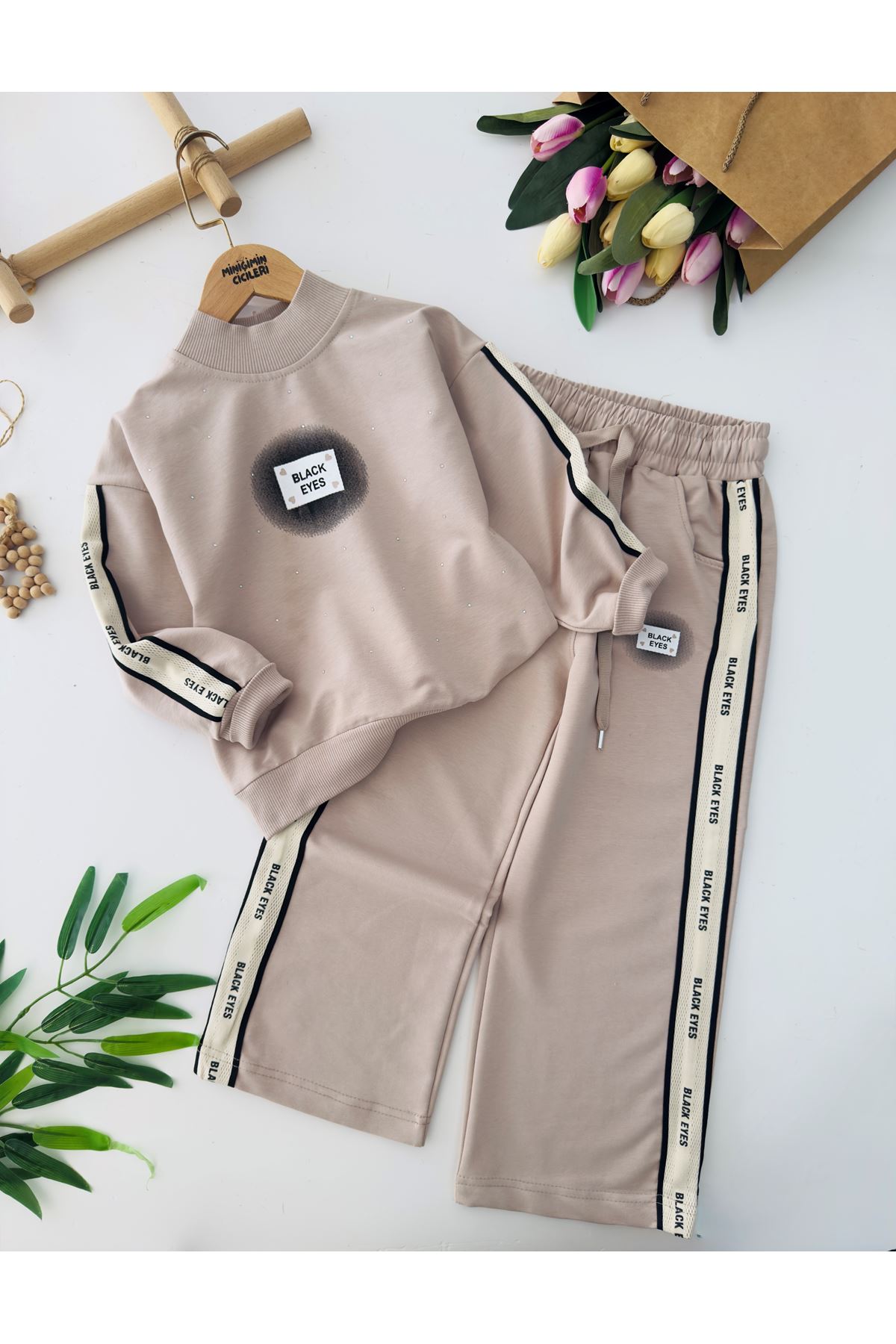 Miniğimin Cicileri Black Eyes Baskılı Taşlı Kız Çocuk 2 li Takım - Bej