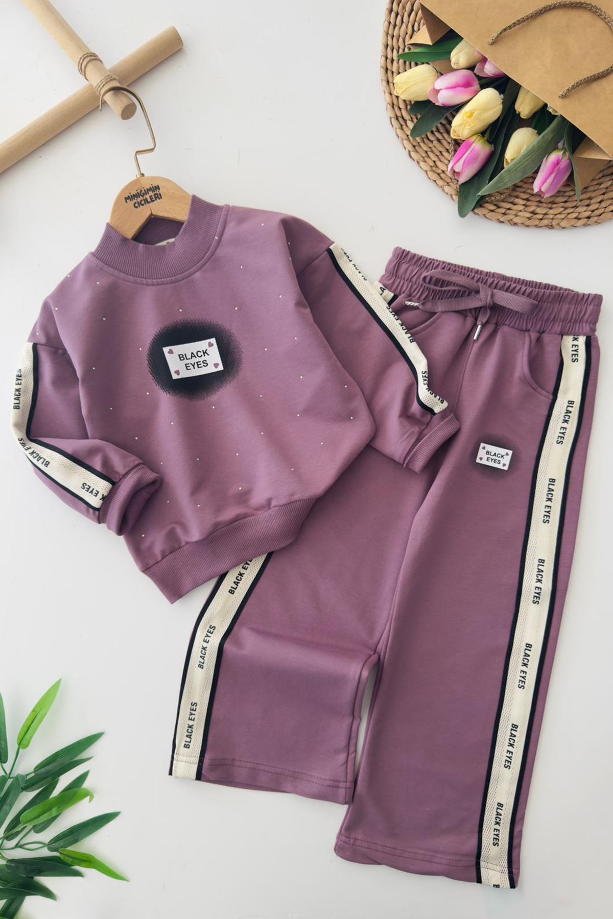 Miniğimin Cicileri Black Eyes Baskılı Taşlı Kız Çocuk 2 li Takım - Mor