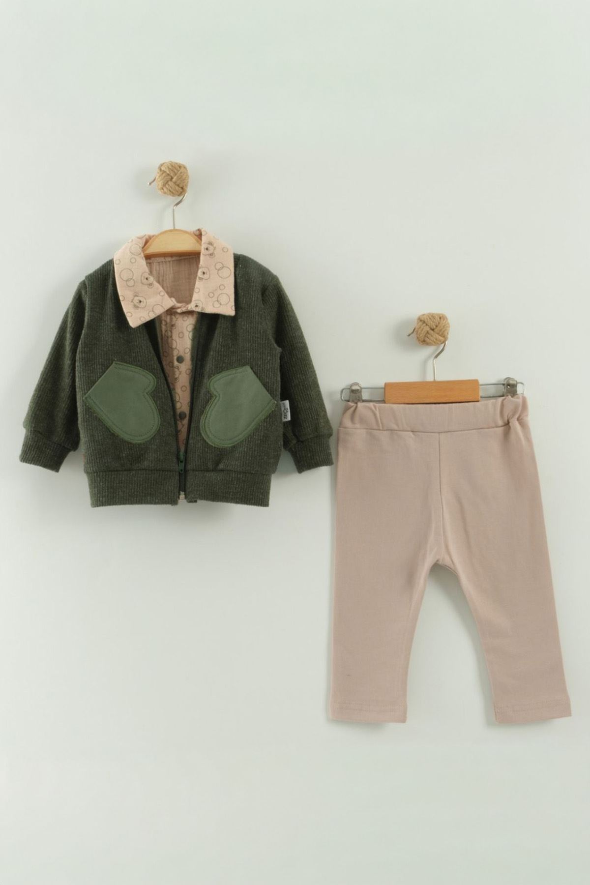 Miniğimin Cicileri Cepli Köpek BaskılıGömlekli Erkek Bebek 3’lü Takım - Yeşil