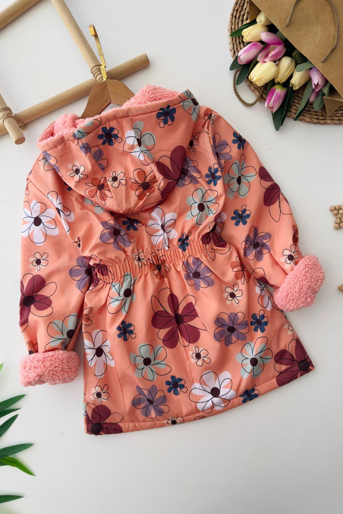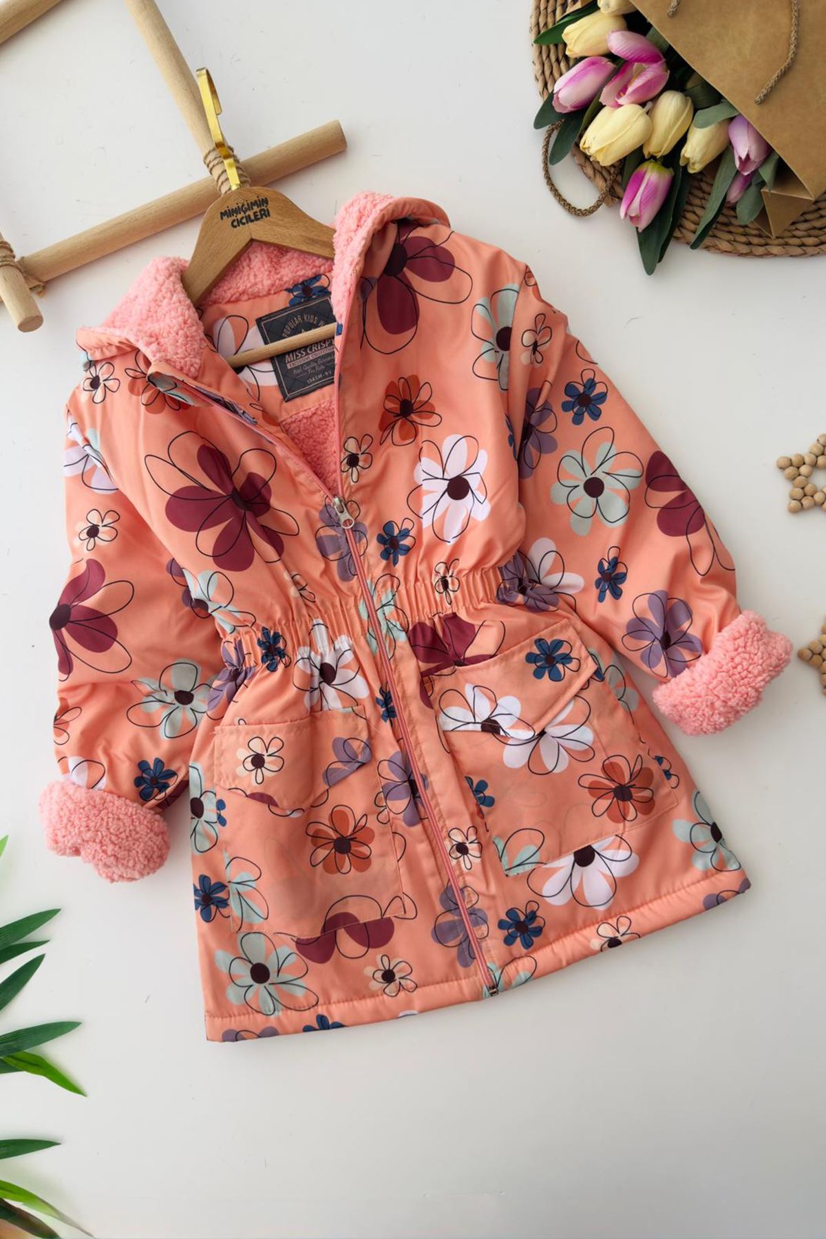 🌸 Miniğimin Cicileri Çiçek Baskılı İçi Welsoft Kız Çocuk Mevsimlik Mont