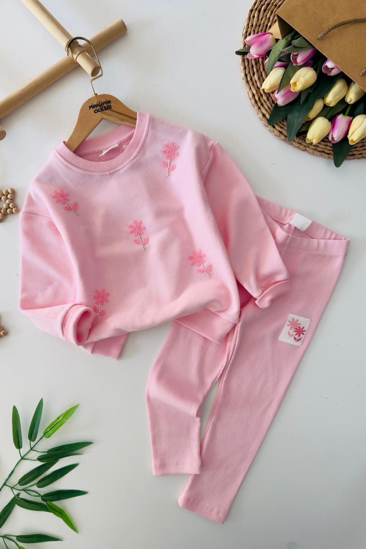 🌸 Miniğimin Cicileri Çiçek Boncuk İşleme Detaylı Kız Çocuk Takım