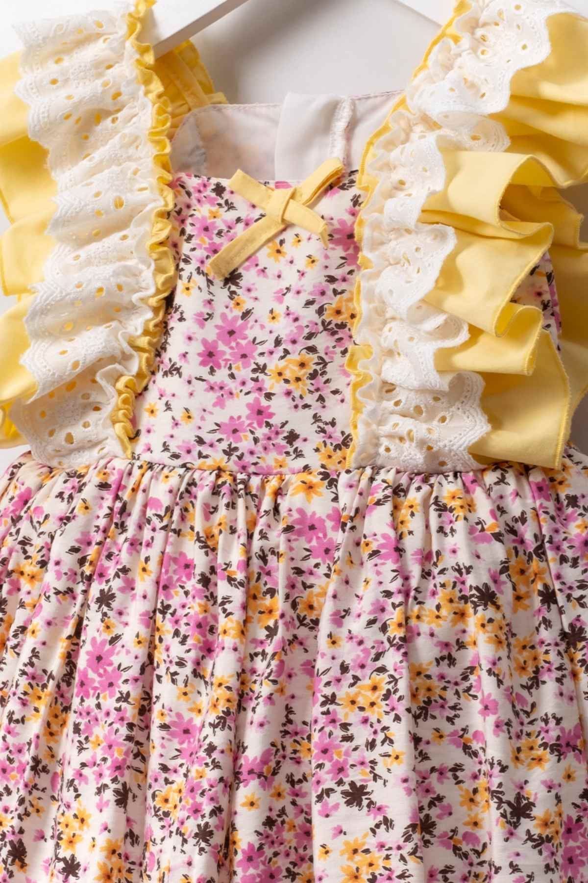 Miniğimin Cicileri Çiçek Desenli Fistolu Kız Çocuk Elbise