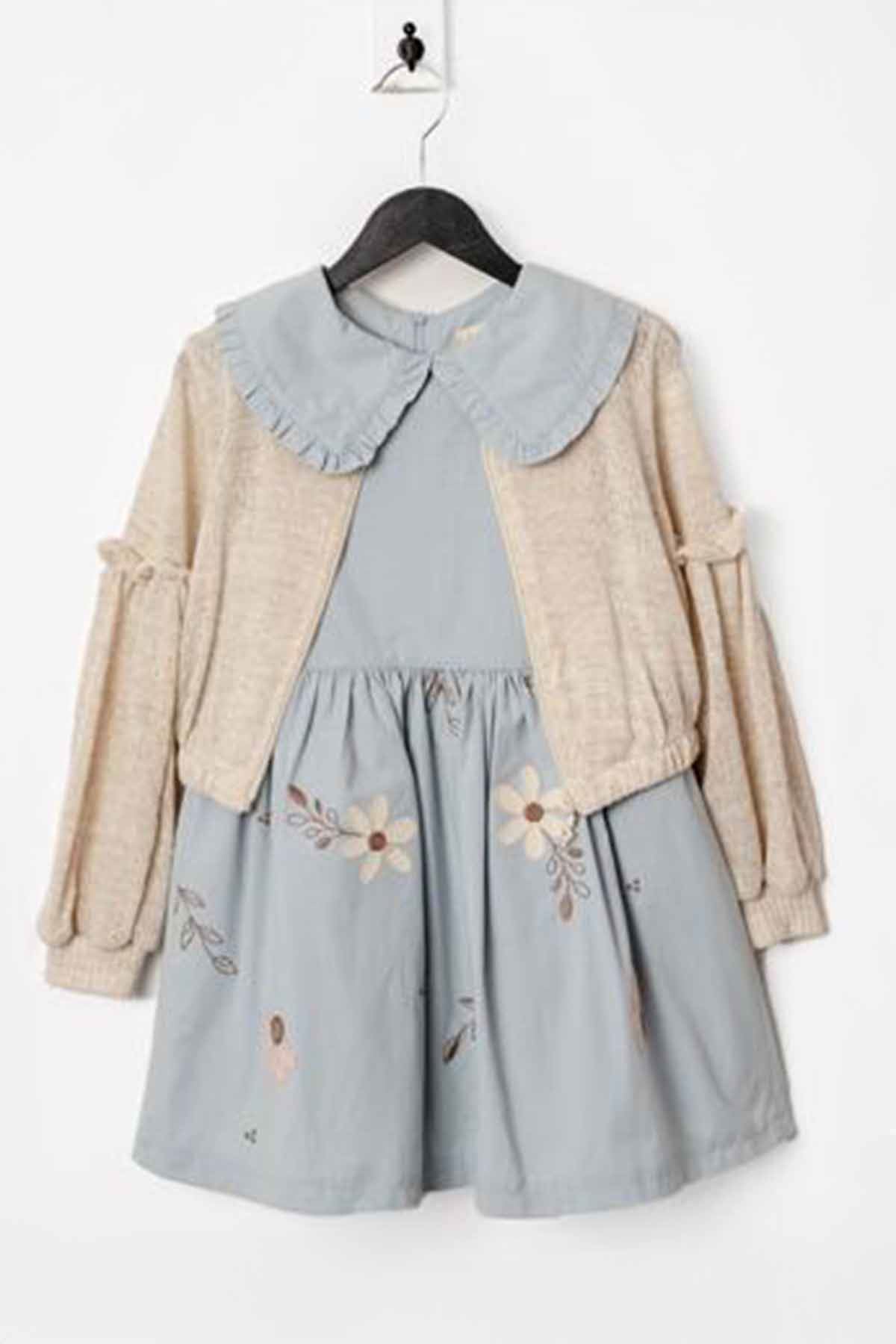 Miniğimin Cicileri Çiçek İşlemeli Balon Kol Hırkalı Kız Çocuk Elbise Takım