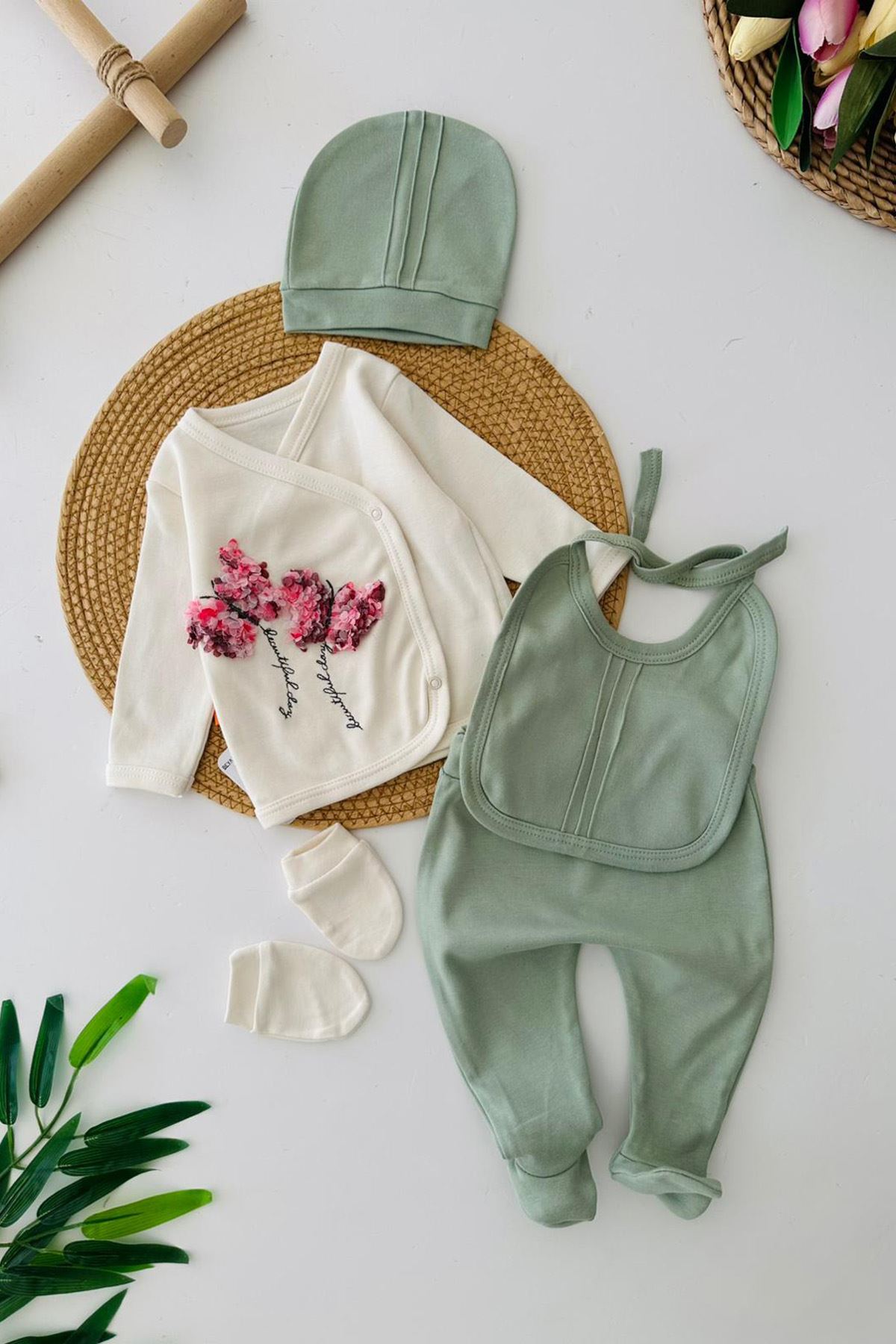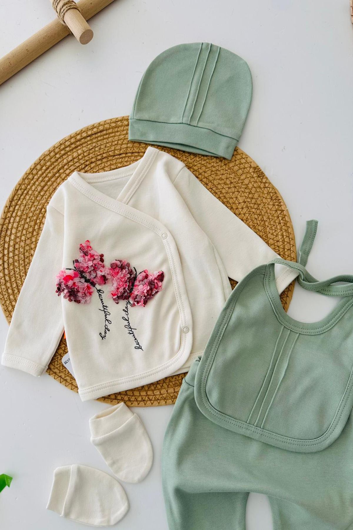 Miniğimin Cicileri Çiçek Nakışlı 5’li Yeni Doğan Kız Bebek Hastane Çıkışı - Yeşil
