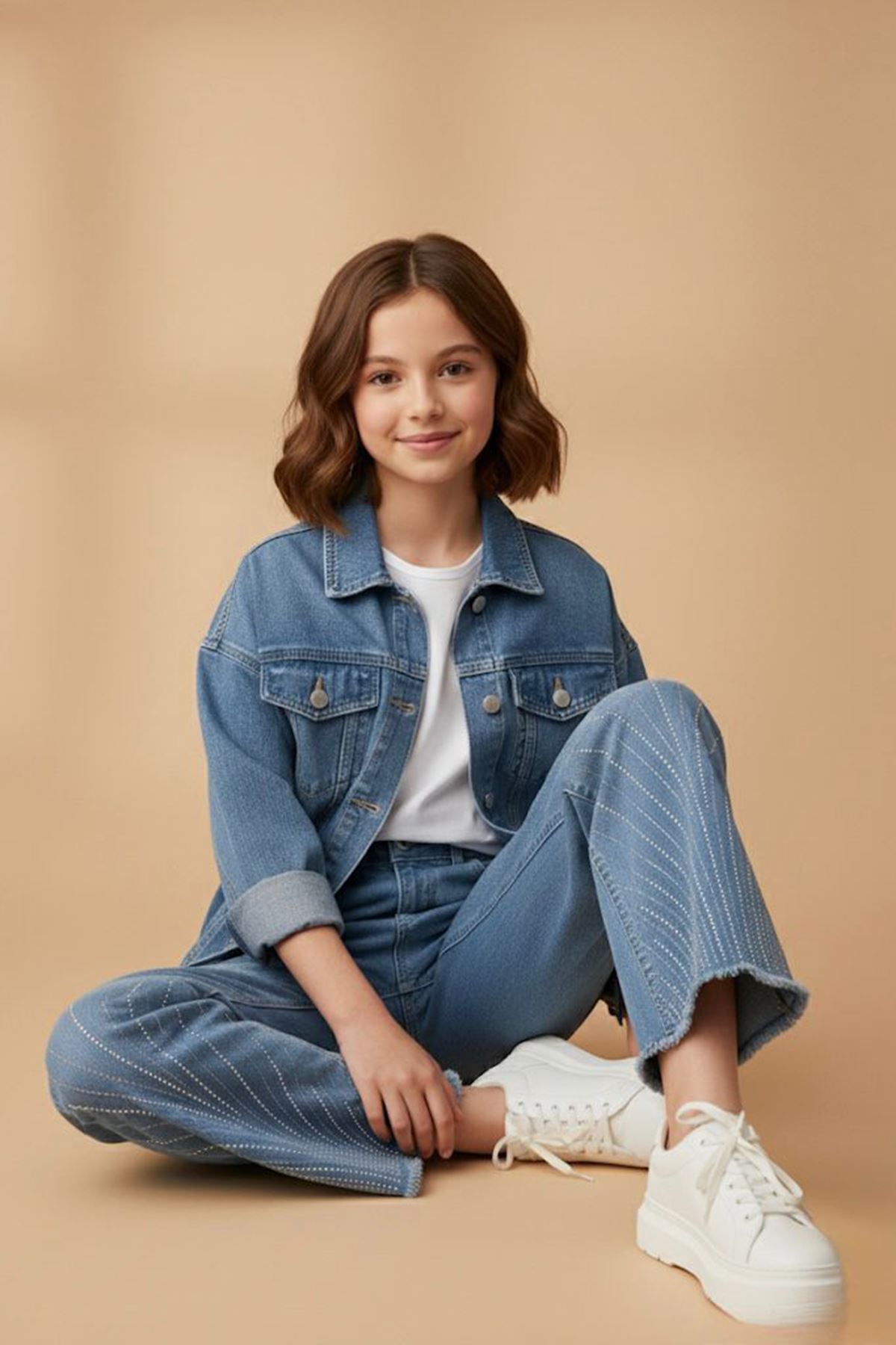 Parıltılı çizgi taş detaylarıyla tarzını konuşturmak isteyen minikler için özel bir parça!