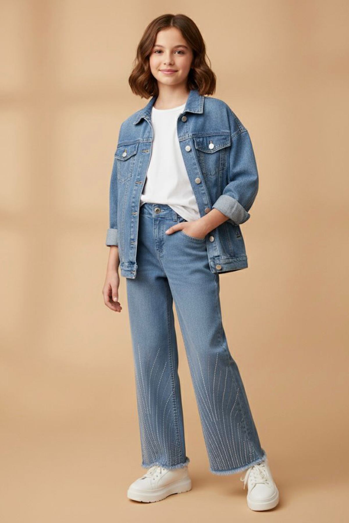 ✨ Miniğimin Cicileri Çizgi Taş Detaylı Kız Çocuk Yumuşak Kot Pantolon