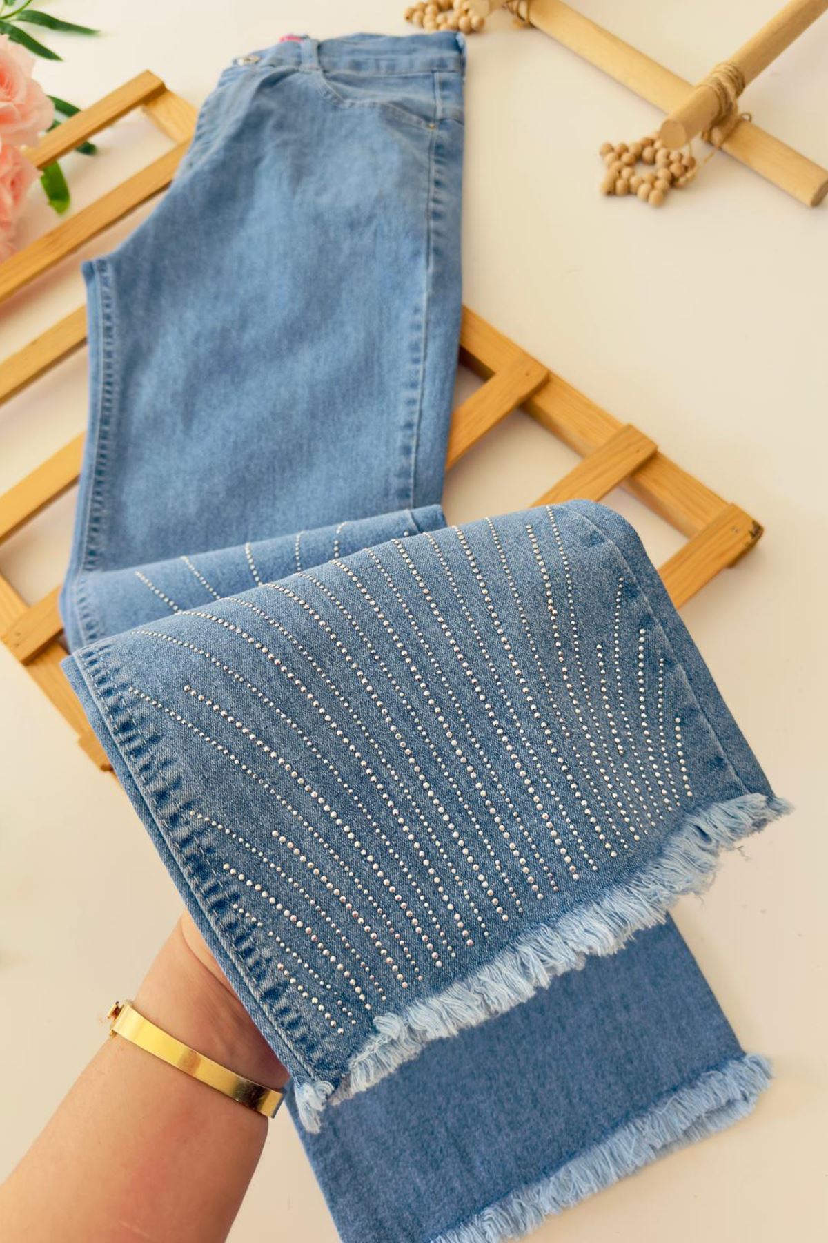 🔹 Ürün Özellikleri: – Paçalarda zarif taş çizgi detayları – Yumuşak dokulu, rahat kalıp kot kumaş – Günlük şıklığa ve özel kombinlere uyum sağlar – Paça kısmı hafif püskül detaylı – Modern ve trend bir görünüm