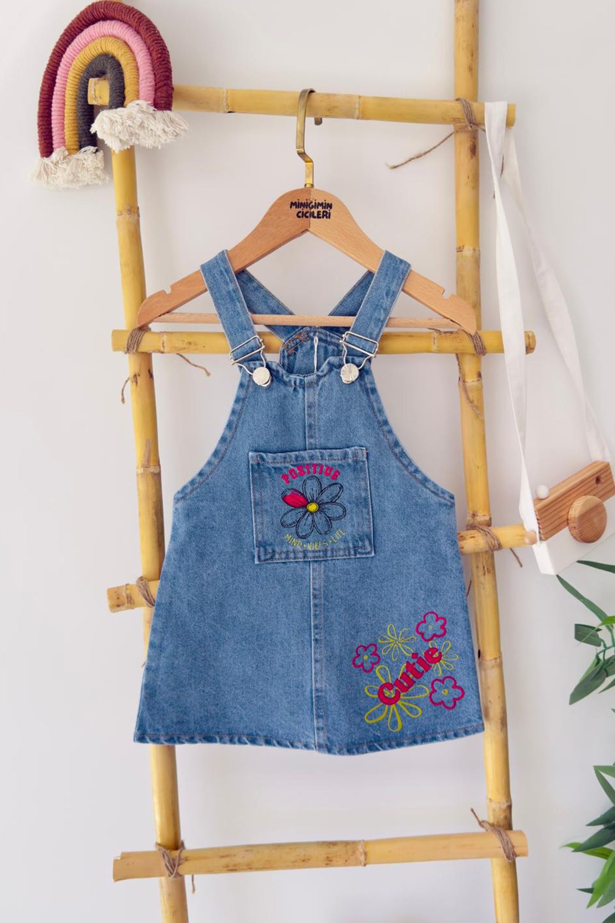 ✨ Ürün Özellikleri: ✔️ Dayanıklı kot kumaş ile uzun süreli kullanım ✔️ Çiçek işlemeleri ve Cutie yazı detayı ile dikkat çeken tasarım ✔️ Ön cep detayı sayesinde pratik kullanım ✔️ Ayarlanabilir askıları ile konforlu ve esnek uyum ✔️ Tişört veya bluzlarla kolayca kombinlenebilir, mevsim geçişlerine uygun