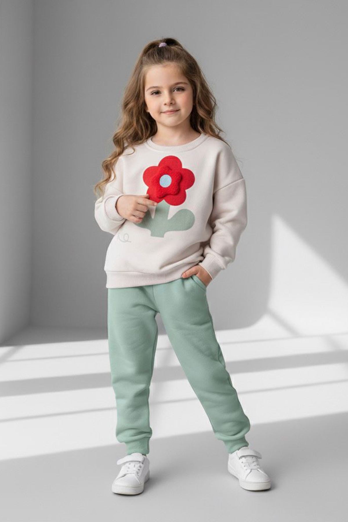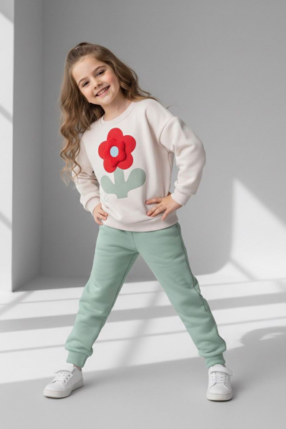 🔹 Ürün Özellikleri: – Üç boyutlu papatya detaylı sweatshirt – Esnek bel yapılı alt parça – Sıcacık tutan kışlık kumaş – Günlük giyim için ideal konfor