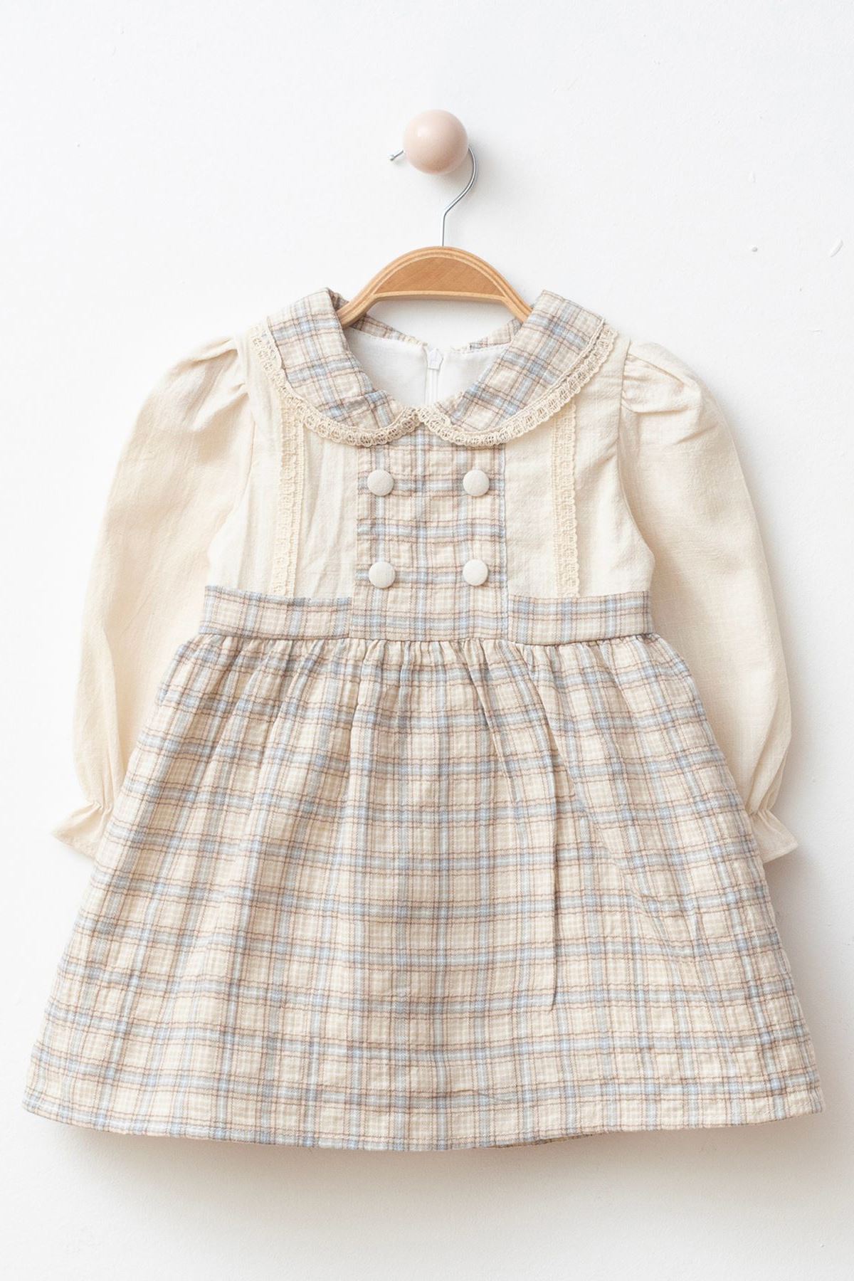 🌸 Miniğimin Cicileri Ekose Düğme Detaylı Kız Çocuk Pamuk Elbise
