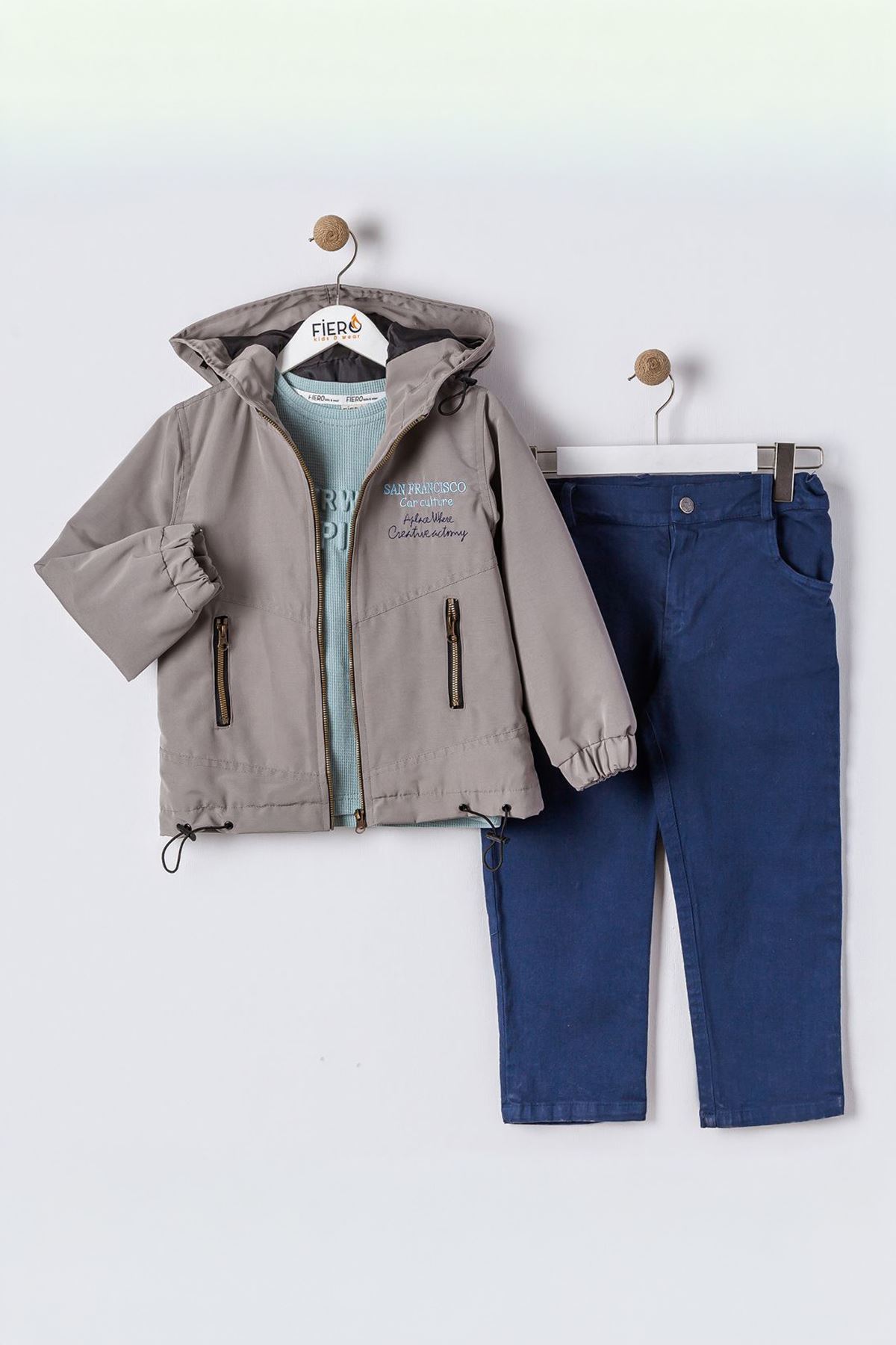 Miniğimin Cicileri Fermuarlı Kapüşonlu Erkek Çocuk Kışlık 3’lü Kombin - Gri