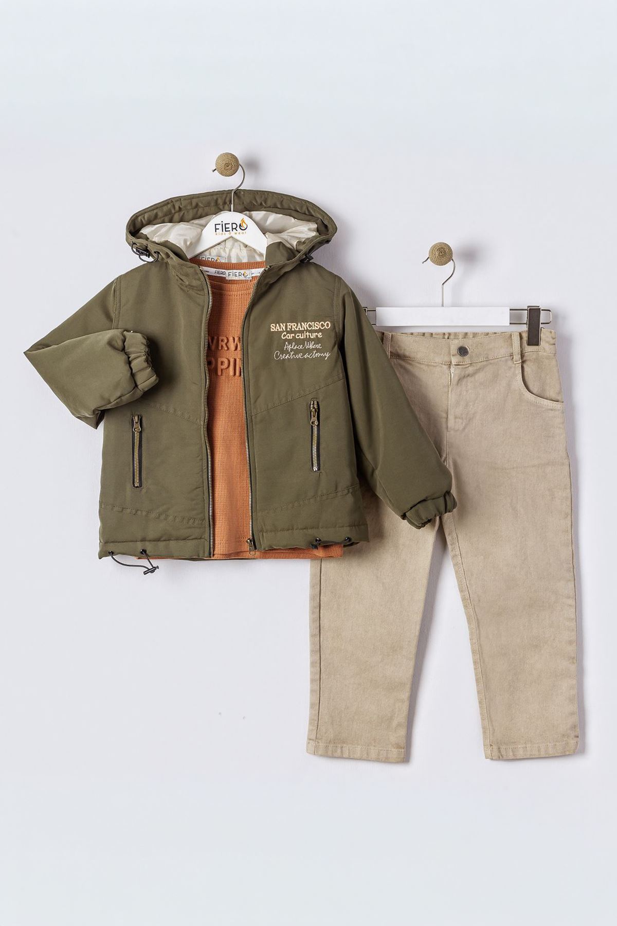 🧥 Fermuarlı Kapüşonlu Erkek Çocuk Kışlık 3’lü Kombin