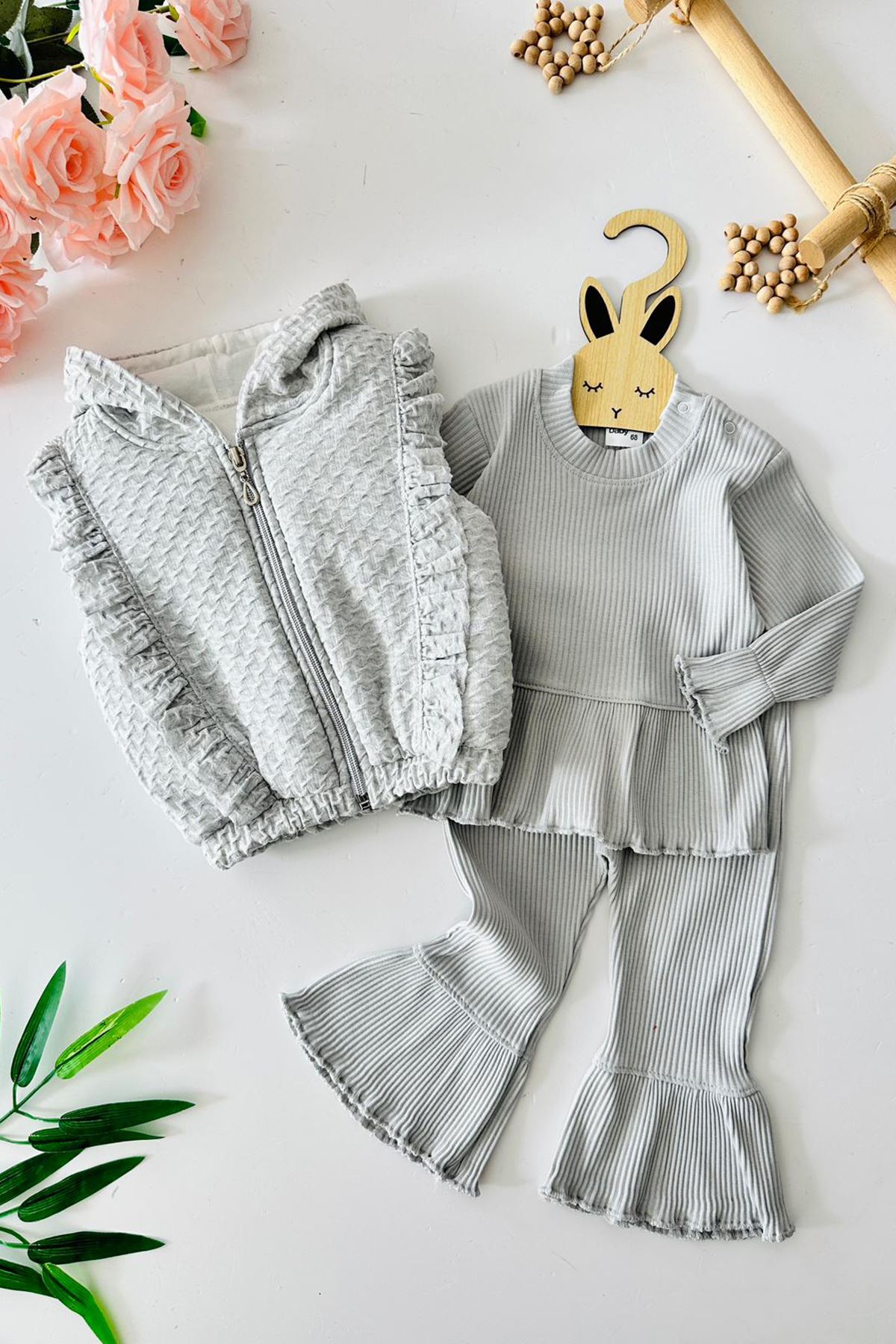 Şıklığı ve konforu bir araya getiren bu özel 3’lü takım, minik prensesinizin gardırobuna zarafet katıyor. Hareket kabiliyeti sunan yumuşak dokusu ve göz alıcı detaylarıyla günlük şıklığın yeni adresi.