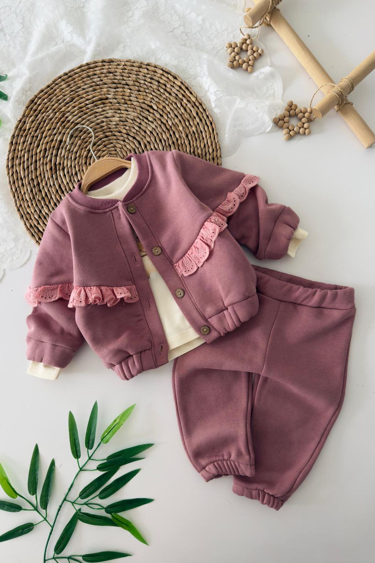 🔖 Miniğimin Cicileri Fisto Detaylı 3’lü Kışlık Kız Bebek Takım