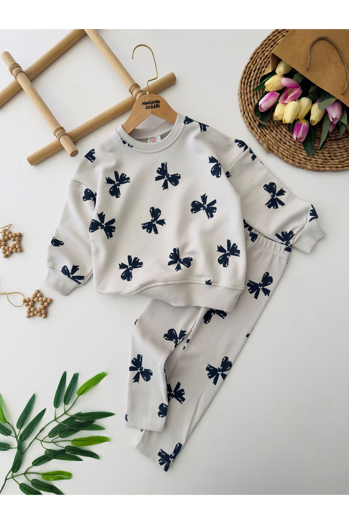 Modern ve sevimli fiyonk desenleriyle minik prenseslere hem rahatlık hem de şıklık sunan özel bir takım! 🎀✨