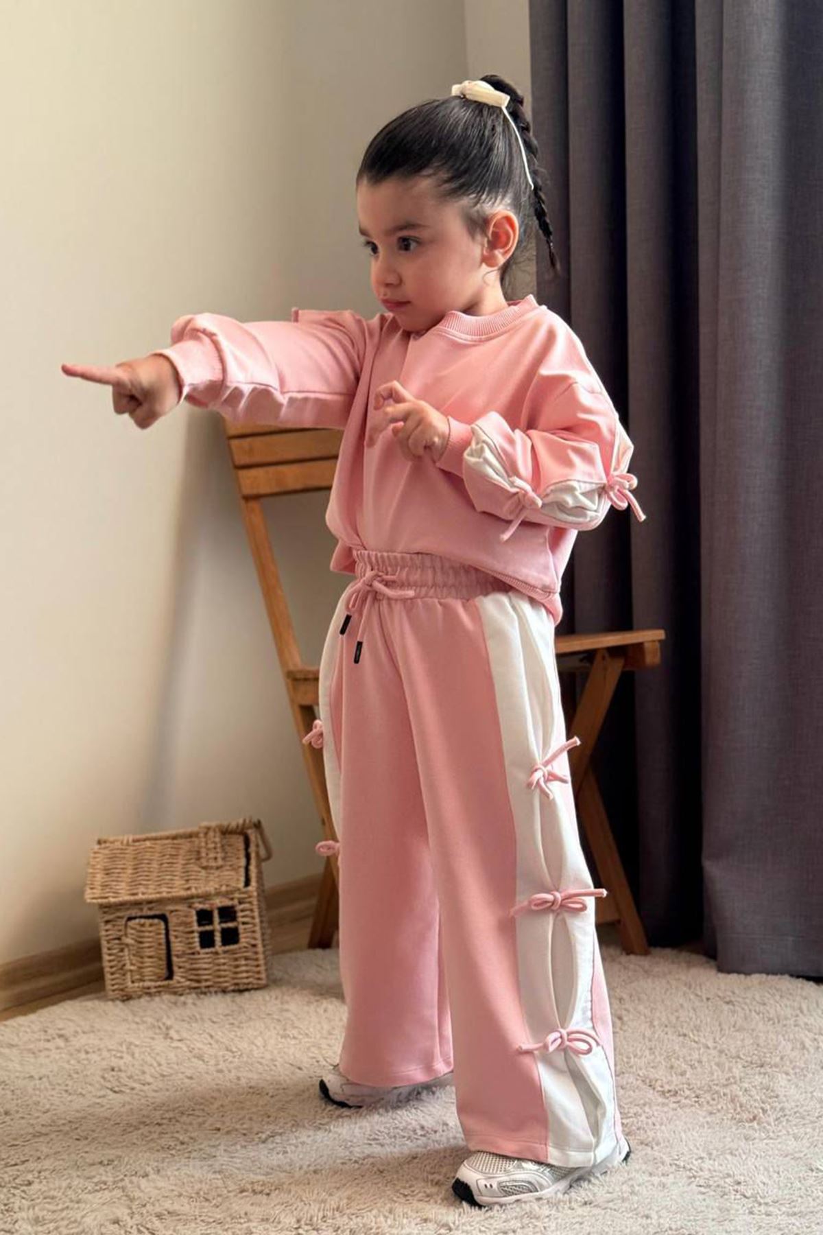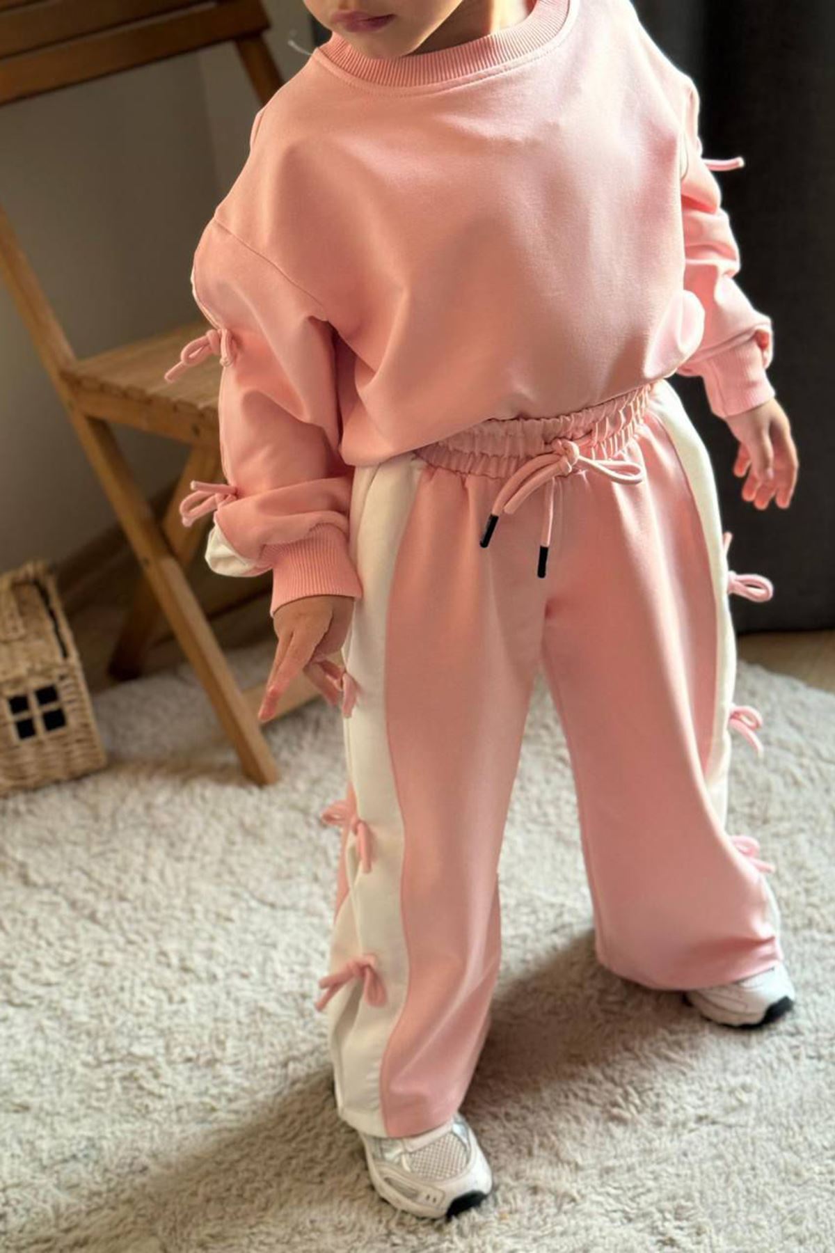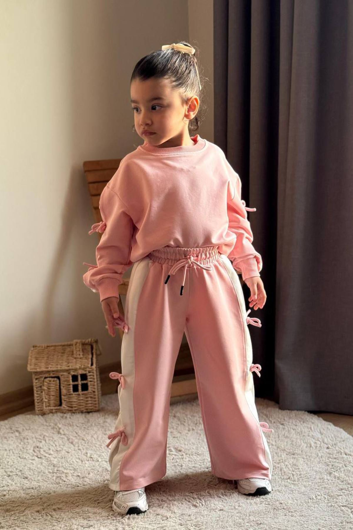 Hem şık hem rahat tasarımıyla öne çıkan bu takım, fiyonk detayları ve yan şeritleriyle minik prenseslerin enerjisine uyum sağlıyor. Günlük kullanımda konfor sunarken modern görünümüyle de dikkat çekiyor. 🎀✨