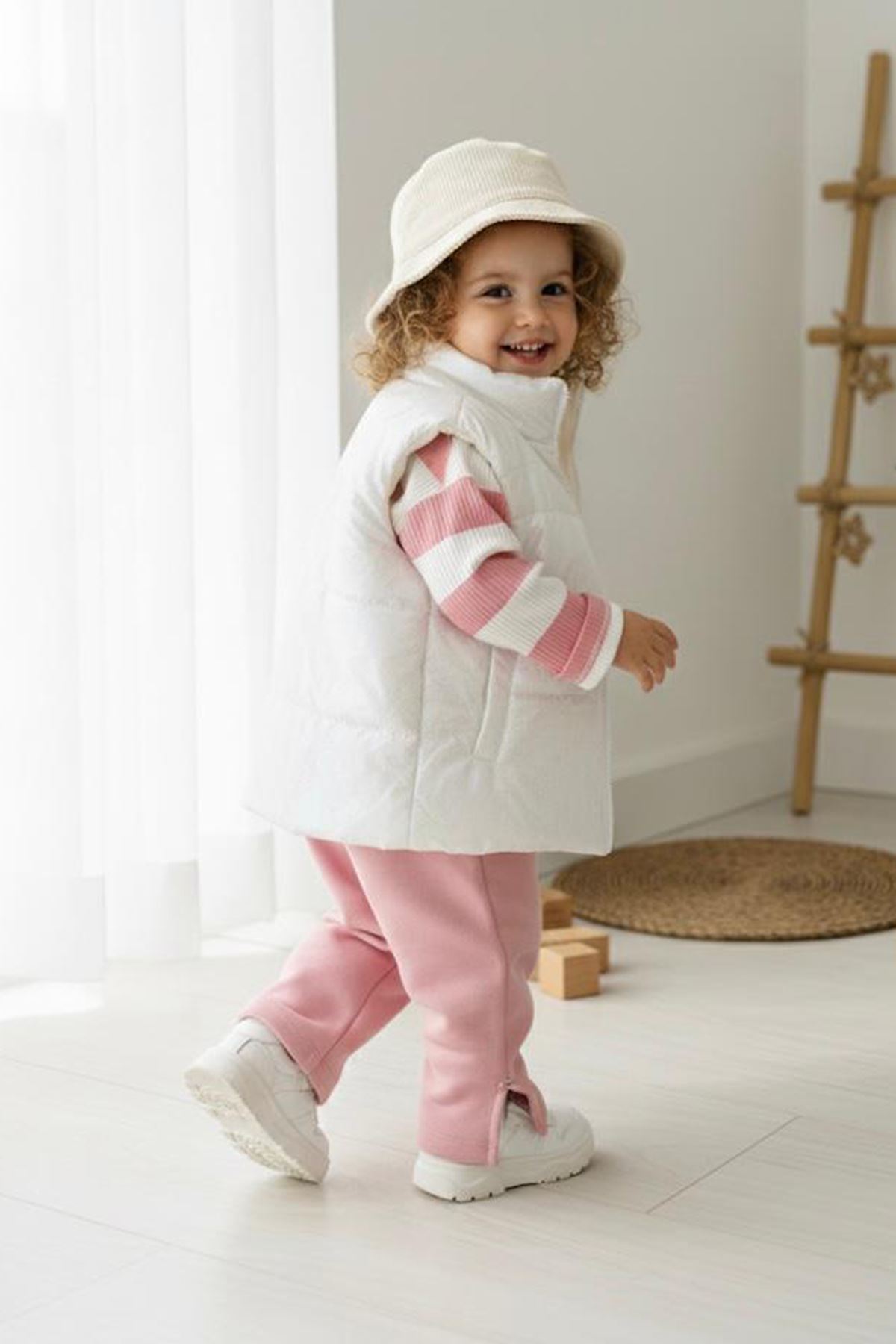 • 👖 Fiyonklu pantolon: Alt kısmındaki küçük fiyonk detayı ile takımın sevimliliğini tamamlar. Esnek beli ile rahat kullanım sağlar.
