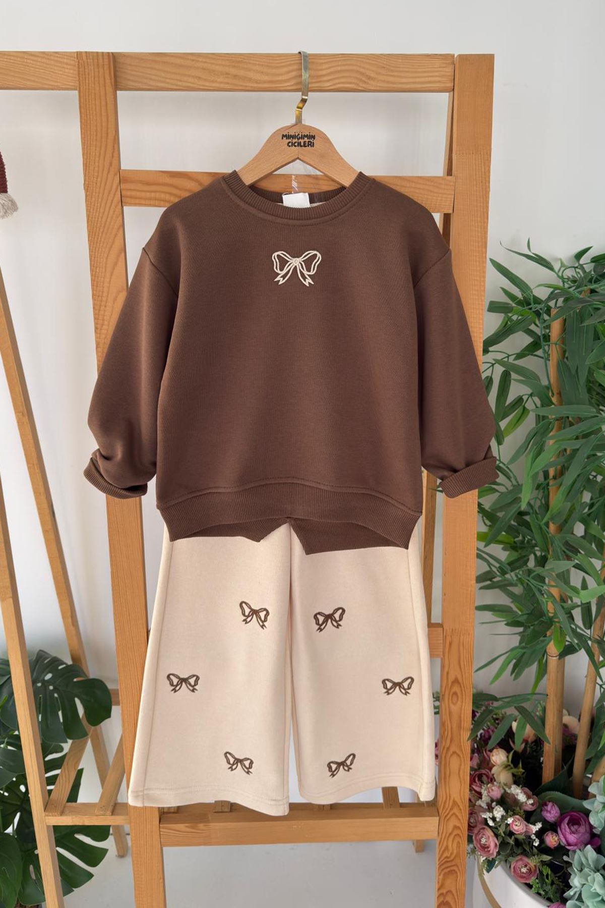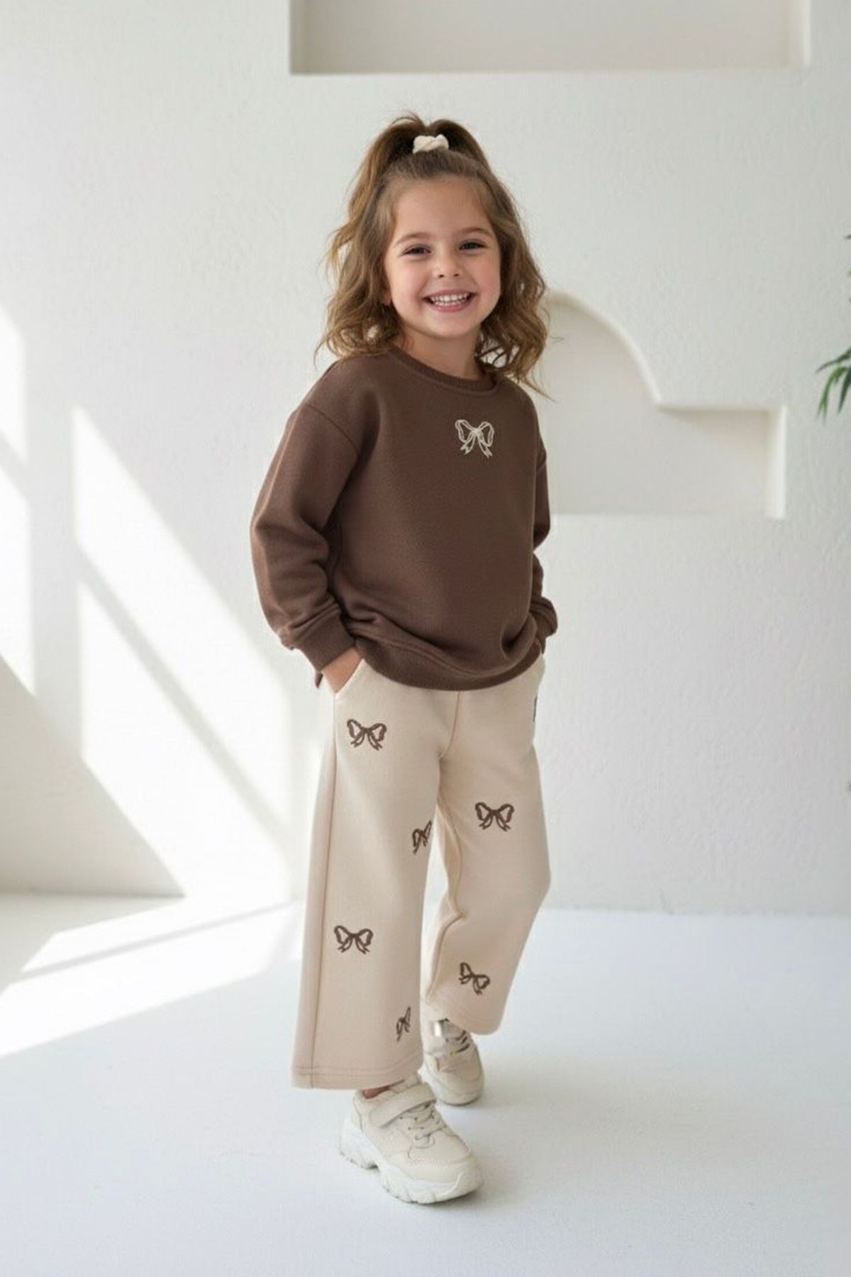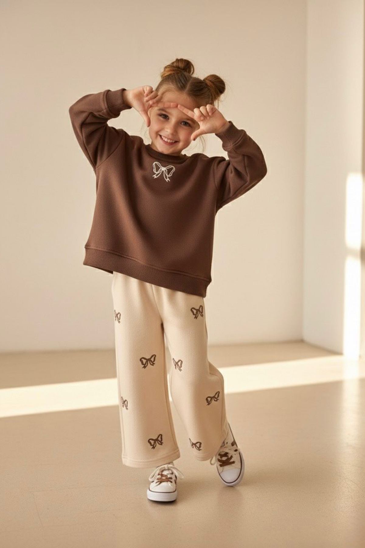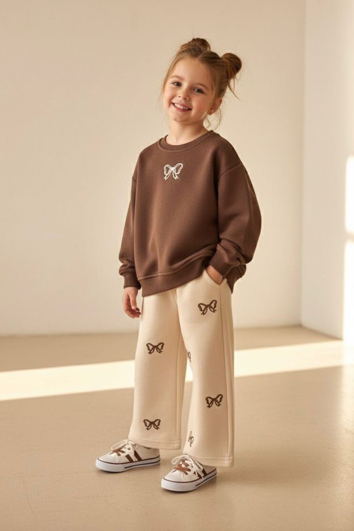 ✨ Ürün Özellikleri: 👕 Üst: – Göğüs kısmında sade fiyonk nakış detayı – Rahat kesim, bisiklet yaka – 3 ip şardonsuz kumaştan üretilmiştir