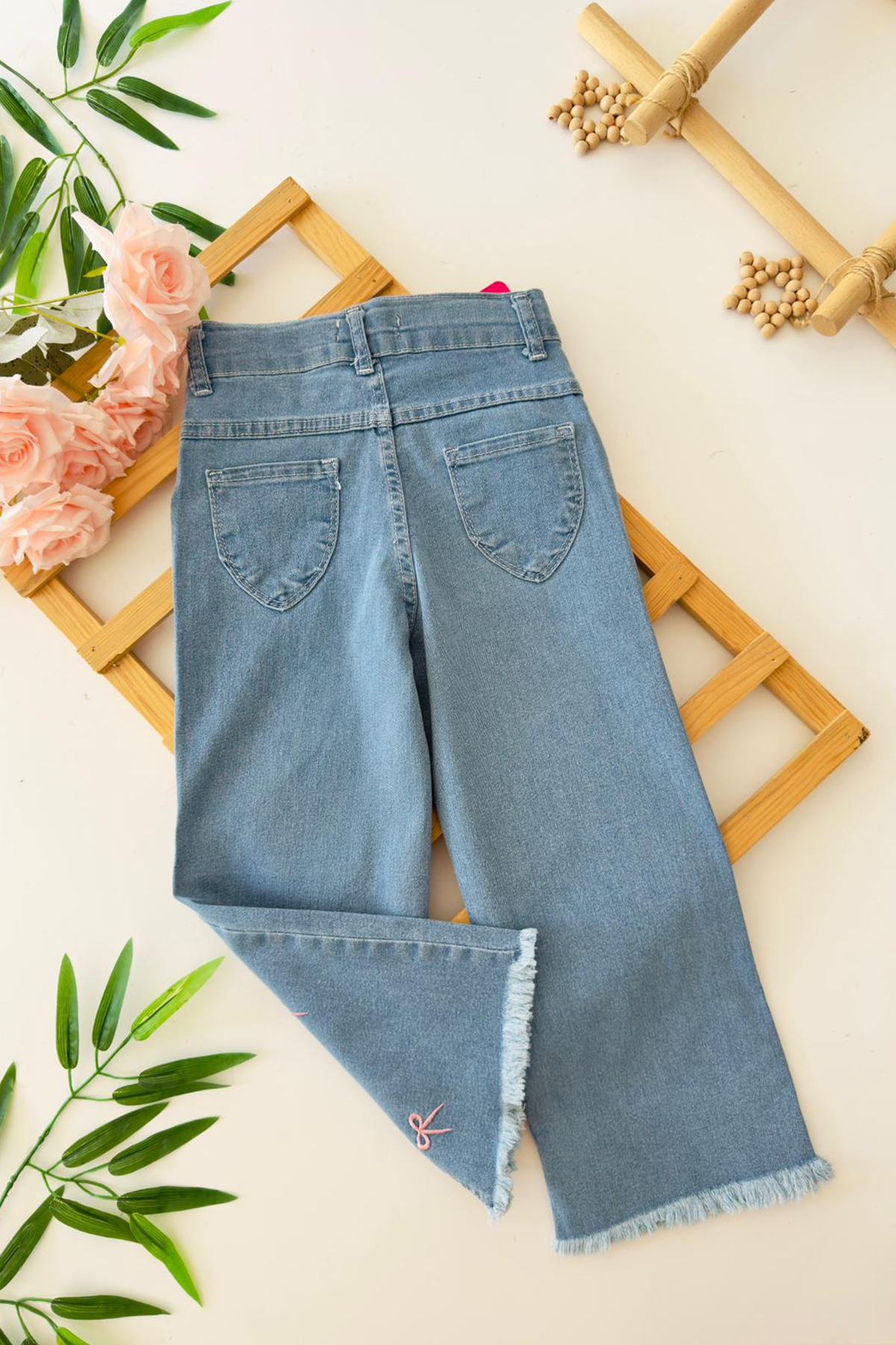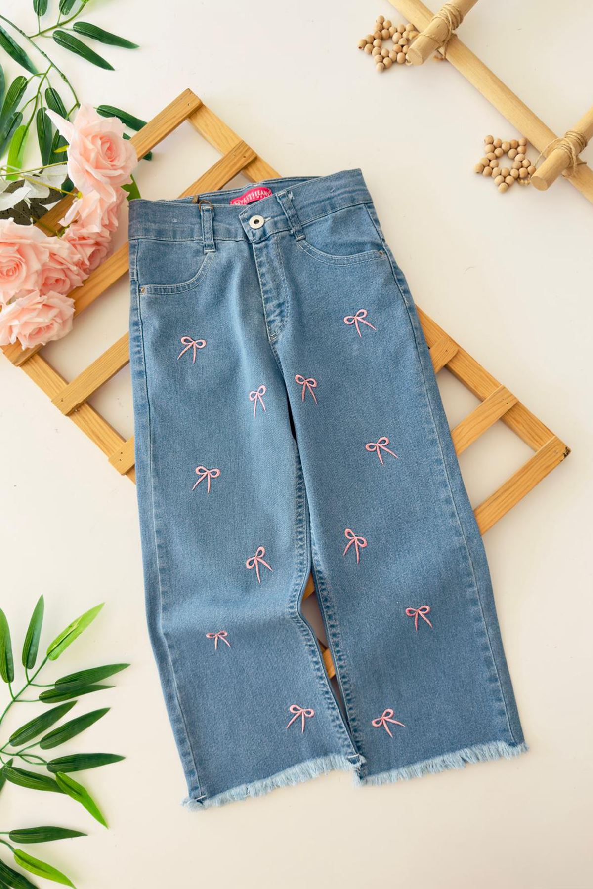🎀 Miniğimin Cicileri Fiyonk İşleme Detaylı Kız Çocuk Yumuşak Kot Pantolon