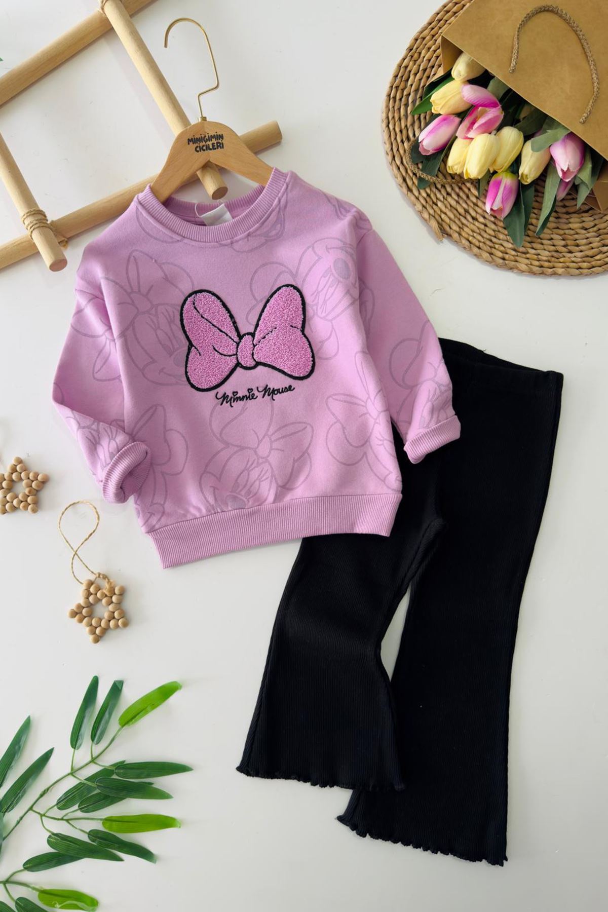 🌸 Miniğimin Cicileri Fiyonk İşleme Detaylı Kız Çocuk 2’li Takım