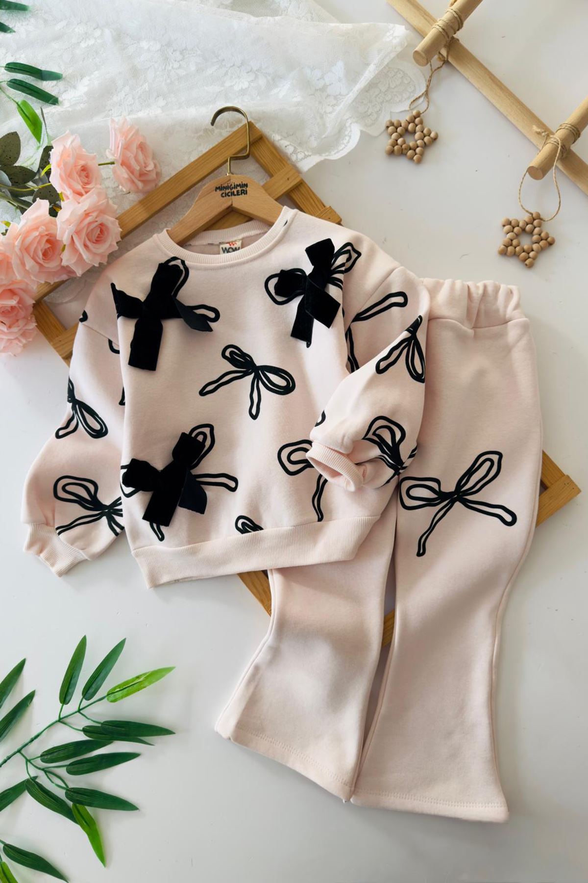 Tatlı fiyonk detaylarıyla minik stil ikonlarına özel şık ve rahat bir takım!