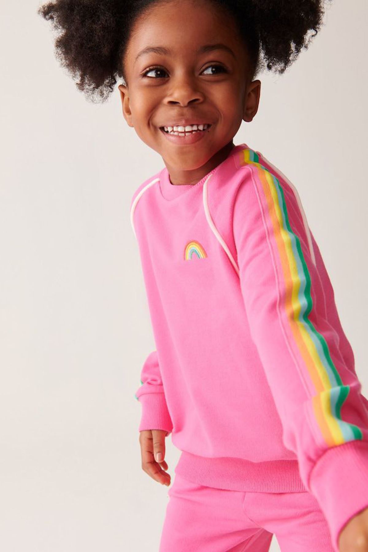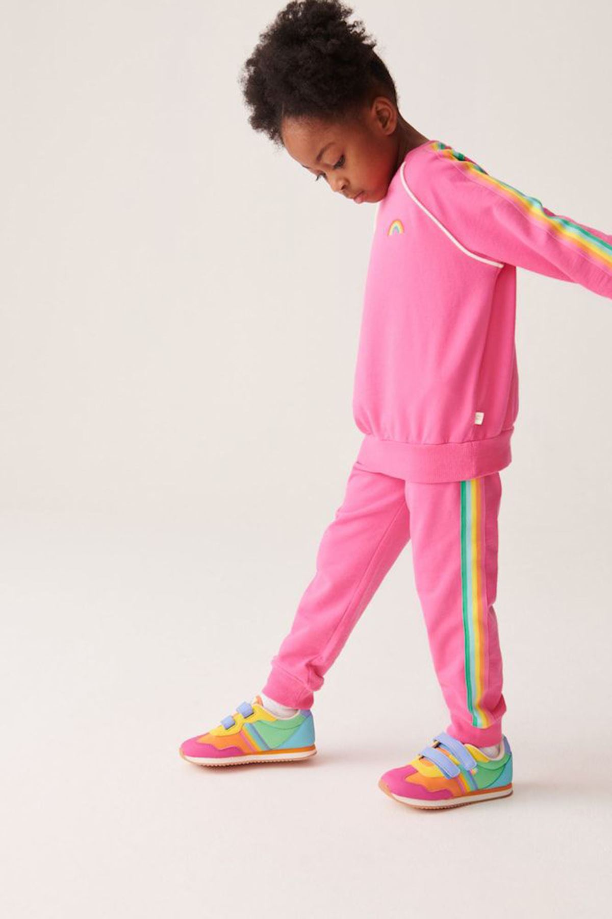 ✨ Ürün Özellikleri: ✔️ Üst ve alt parçada yer alan gökkuşağı işleme detayları ile modern ve eğlenceli bir tasarım sunar. ✔️ Yan şeritlerdeki renkli çizgi detayları, takıma sportif bir hava katar. ✔️ Yumuşak dokulu kumaşı sayesinde hareket özgürlüğü ve rahatlık sağlar. ✔️ Günlük kullanım, okul ya da gezilerde hem şık hem konforlu tercihtir. ✔️ Rahat kalıp ile çocukların enerjik hareketlerine uyum sağlar.