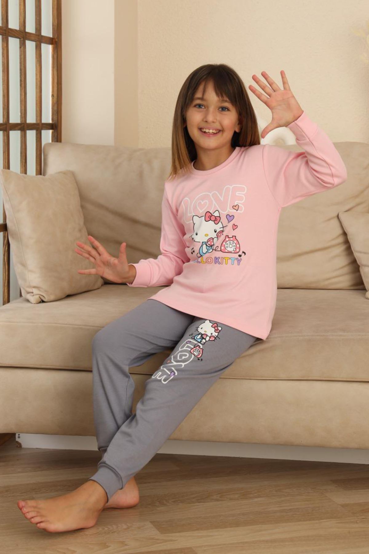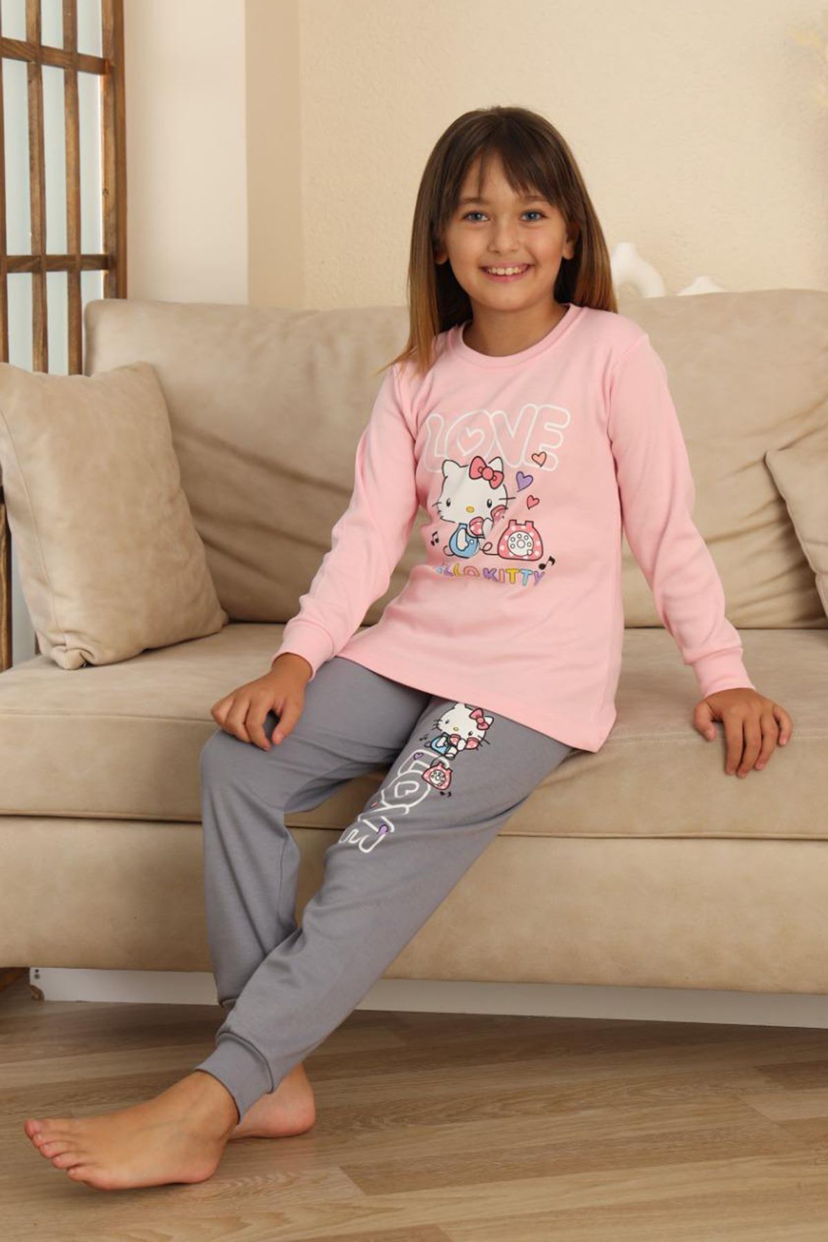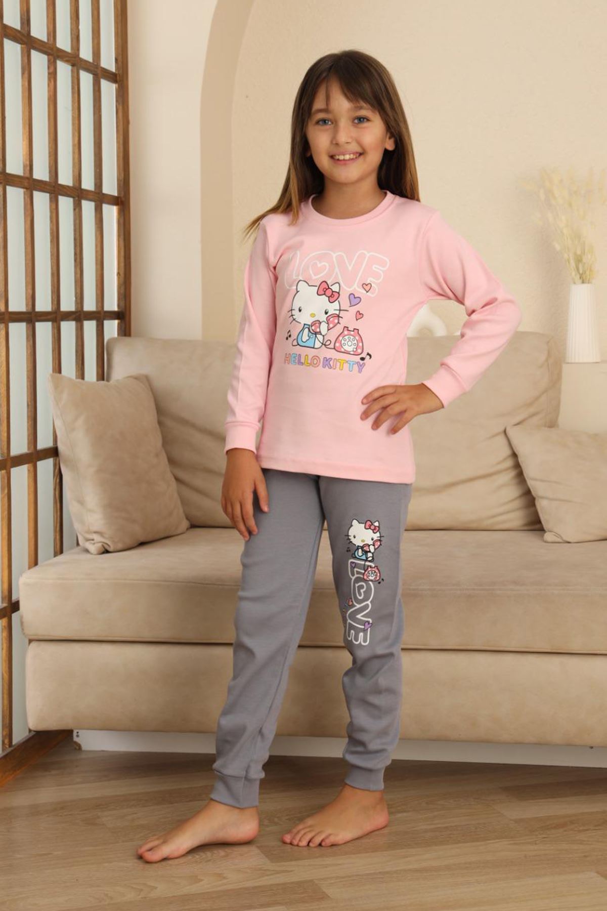 🎀 Hll Kty Love Baskılı Kız Çocuk Pijama Takımı