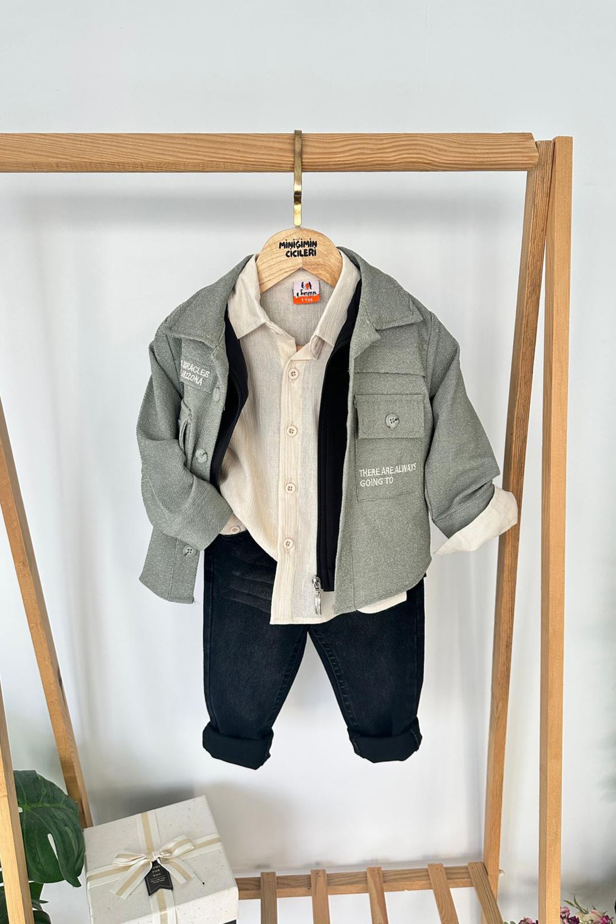 🧩 Miniğimin Cicileri İşleme Detaylı Ceketli Gömlek Yaka Erkek Çocuk 4’lü Takım