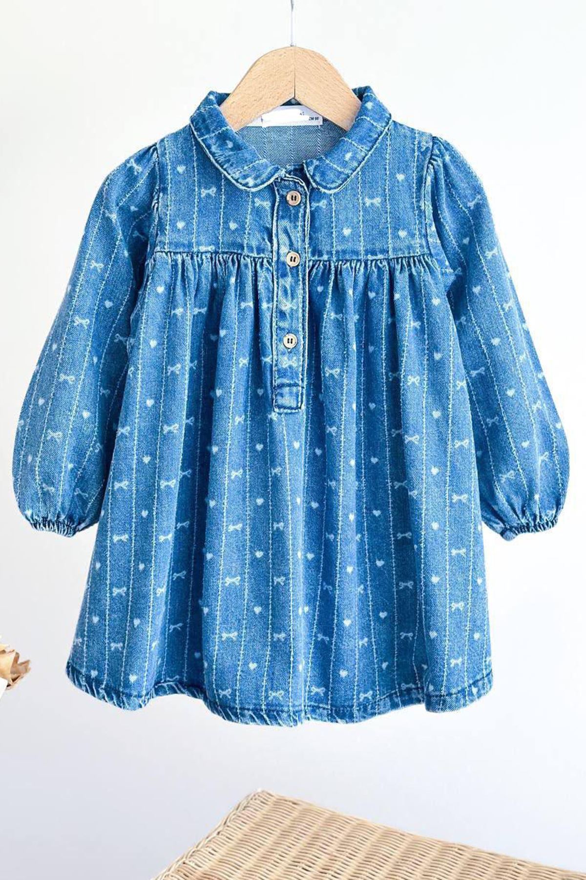 💙 Miniğimin Cicileri Kalp Baskılı Kız Çocuk Soft Kot Elbise