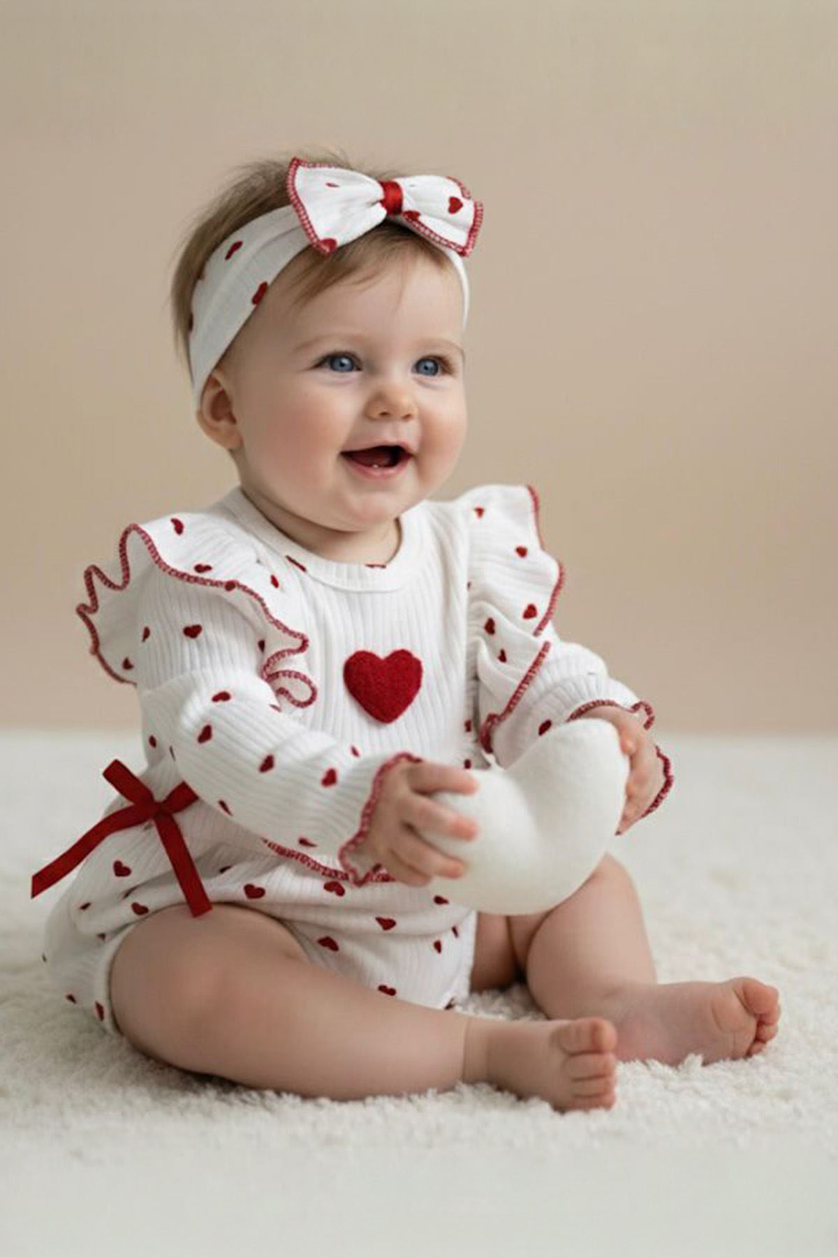 ❤️ Miniğimin Cicileri Kalp Desenli Kız Bebek Tulum ve Bandana