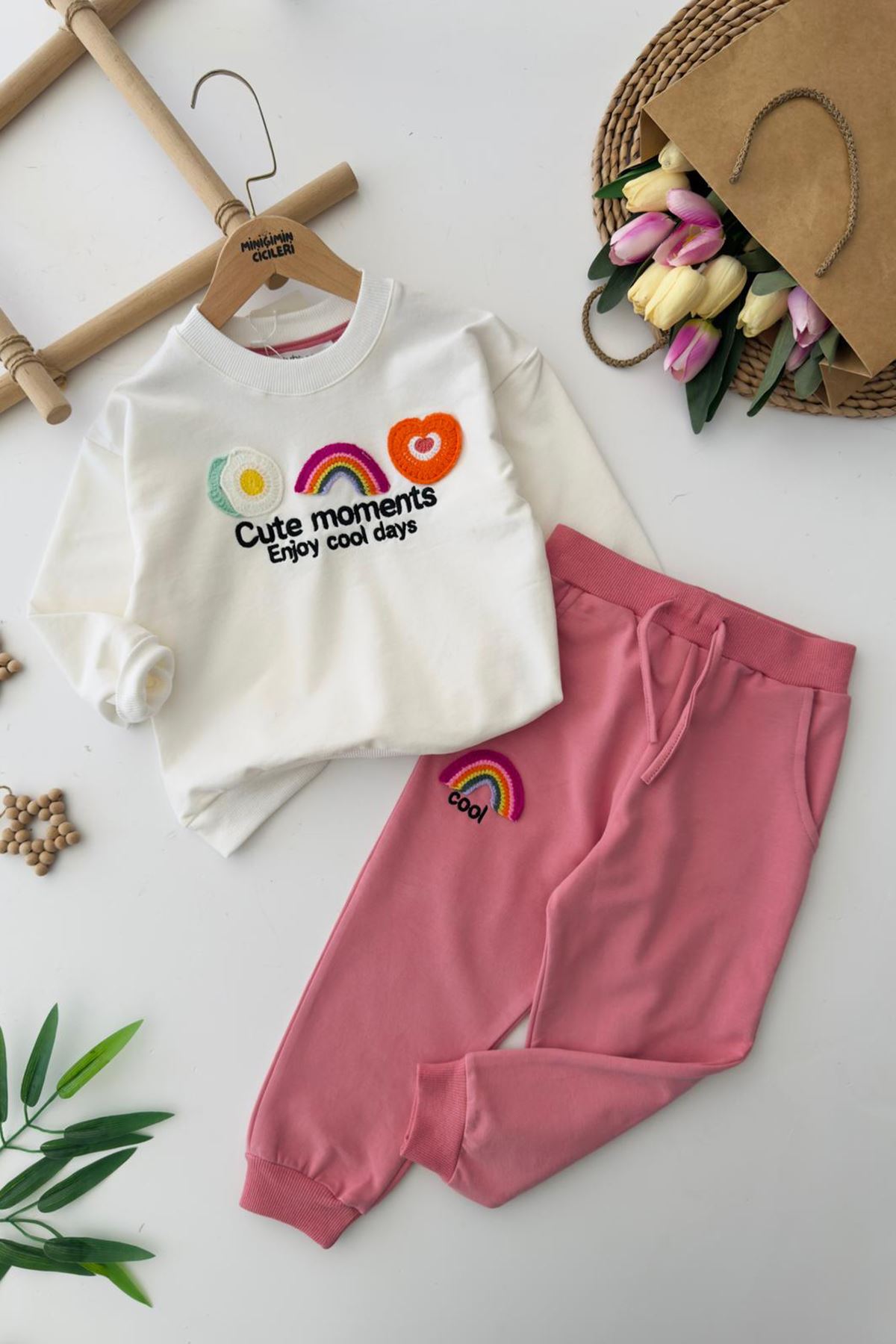 Enerjik tasarımı ve sevimli detaylarıyla miniklerin gününü renklendiren rahat ve şık bir takım. 🌈💖✨