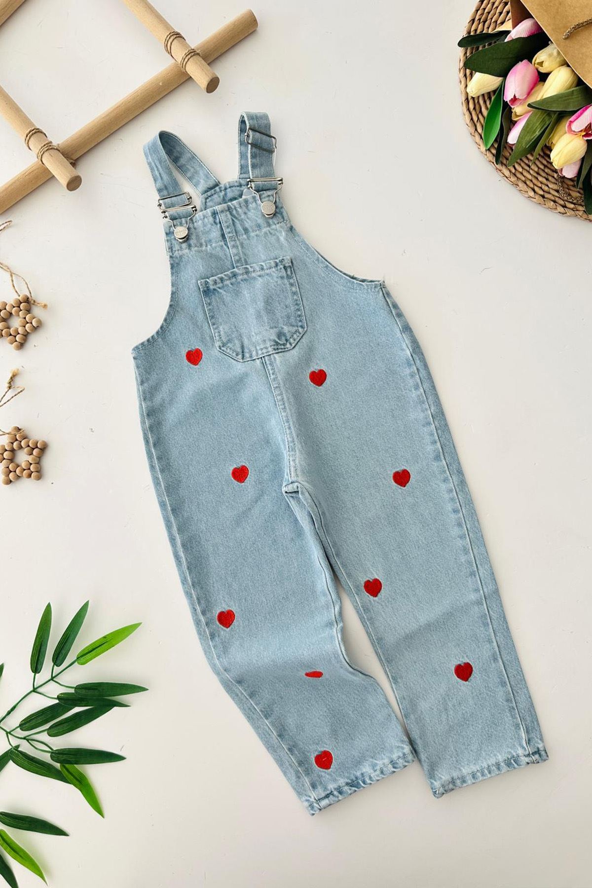🌸 Miniğimin Cicileri Kalp İşleme Kız Çocuk Kot Salopet