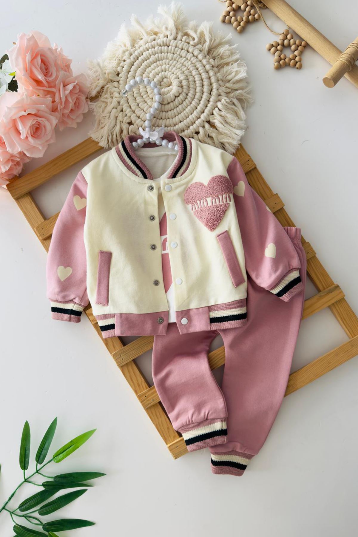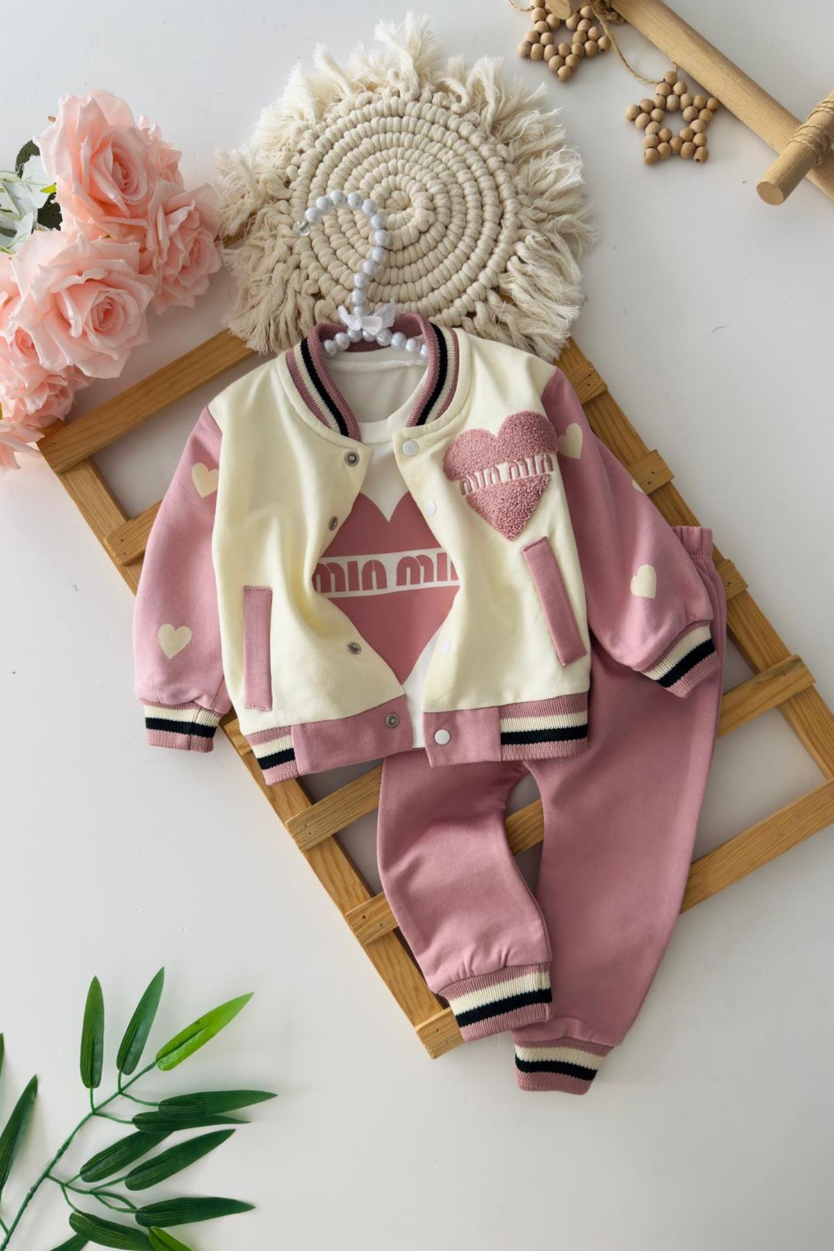 🌸 Miniğimin Cicileri Kalp Panç İşleme Detaylı Kız Bebe Kolej Takım