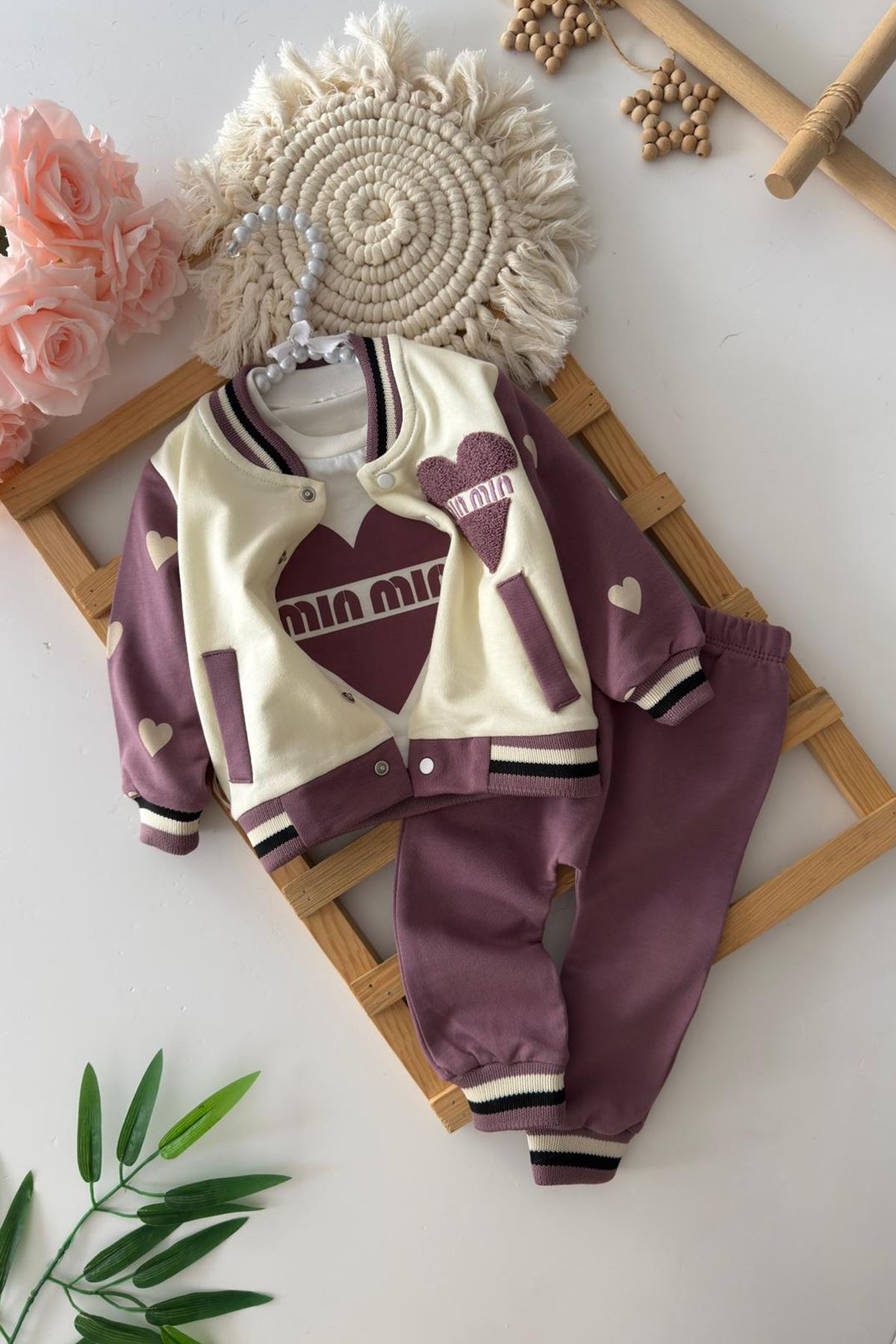 Miniğimin Cicileri Kalp Panç İşleme Detaylı Kız Bebe Kolej Takım - Mürdüm