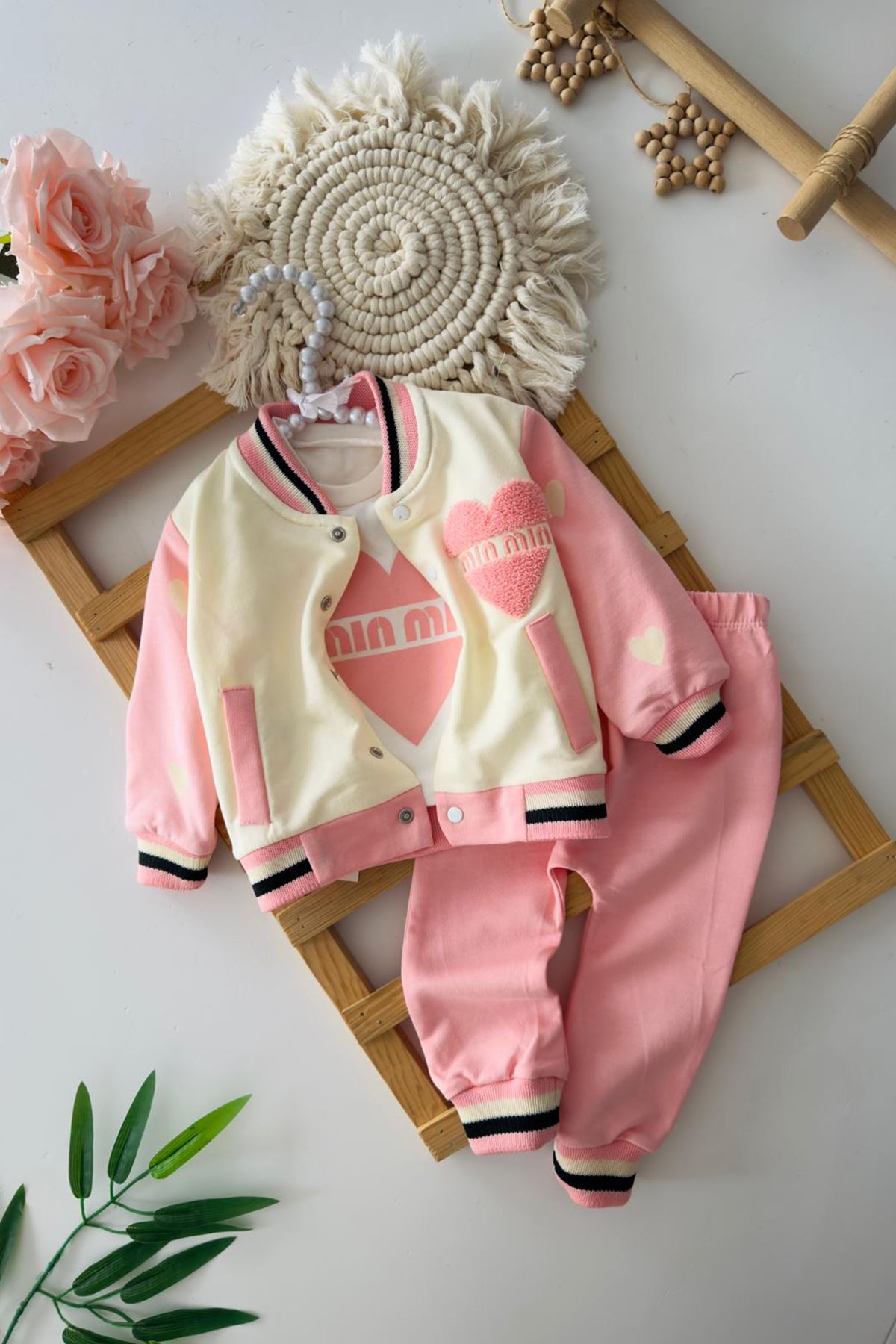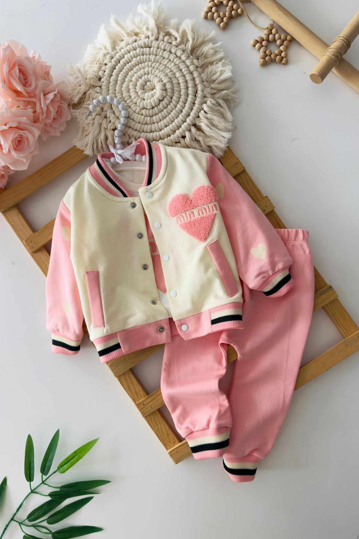 🌸 Miniğimin Cicileri Kalp Panç İşleme Detaylı Kız Bebe Kolej Takım