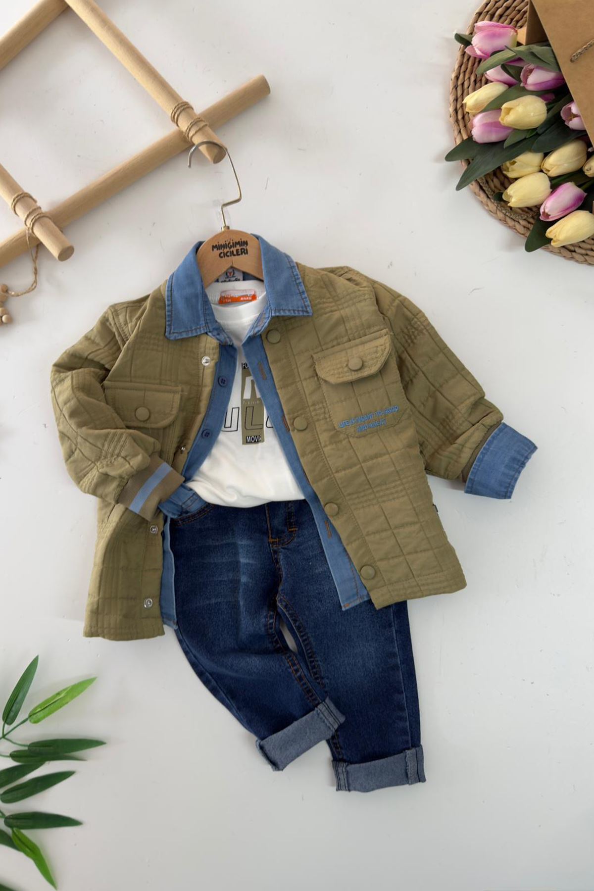 Günlük stilini pratik şekilde tamamlamak isteyen minikler için hazırlanan bu 4’lü set; kapitone ceket, tensel gömlek, tişört ve jean pantolonuyla işlevsel ve uyumlu bir kombin sunar.