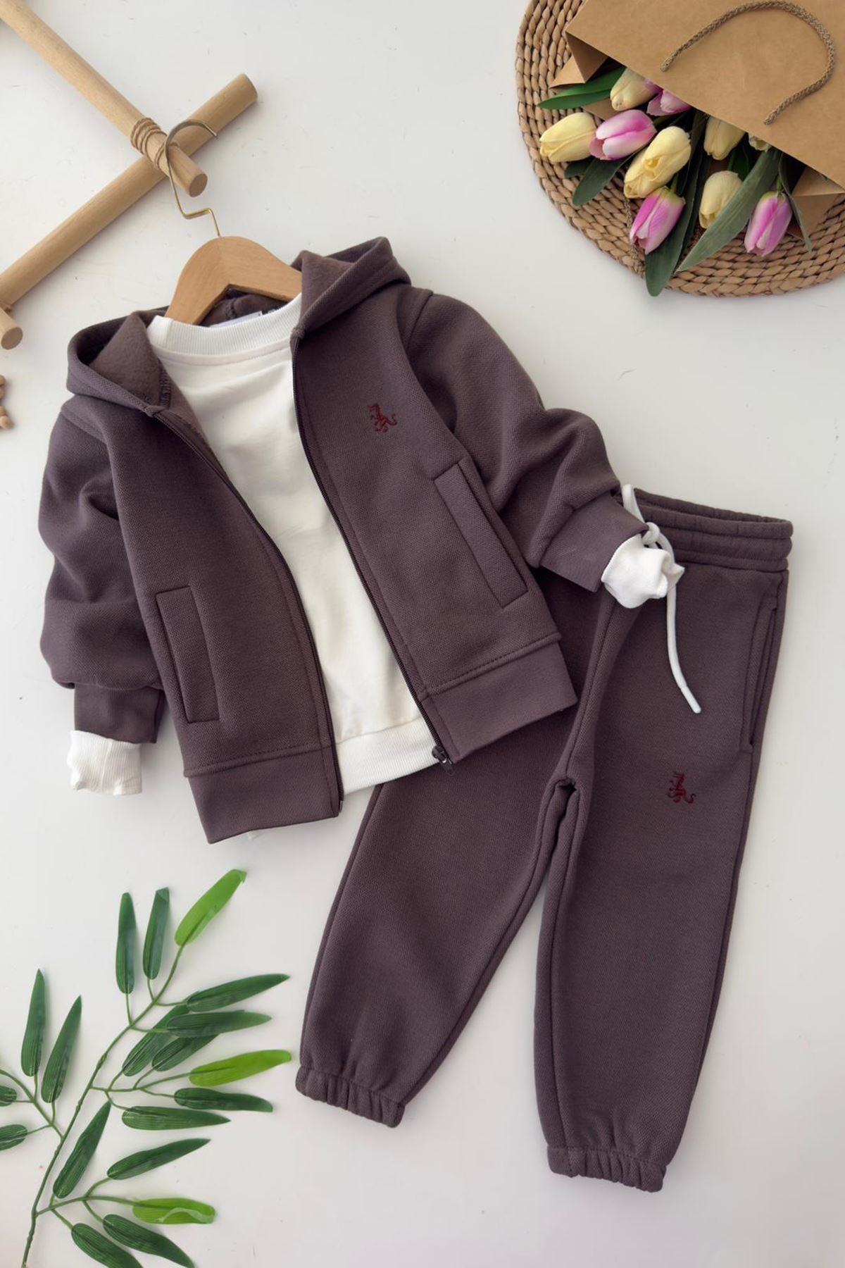 Miniğimin Cicileri Kapüşonlu Fermuarlı 2’li Unisex Çocuk Kışlık Eşofman Takımı - Kahve