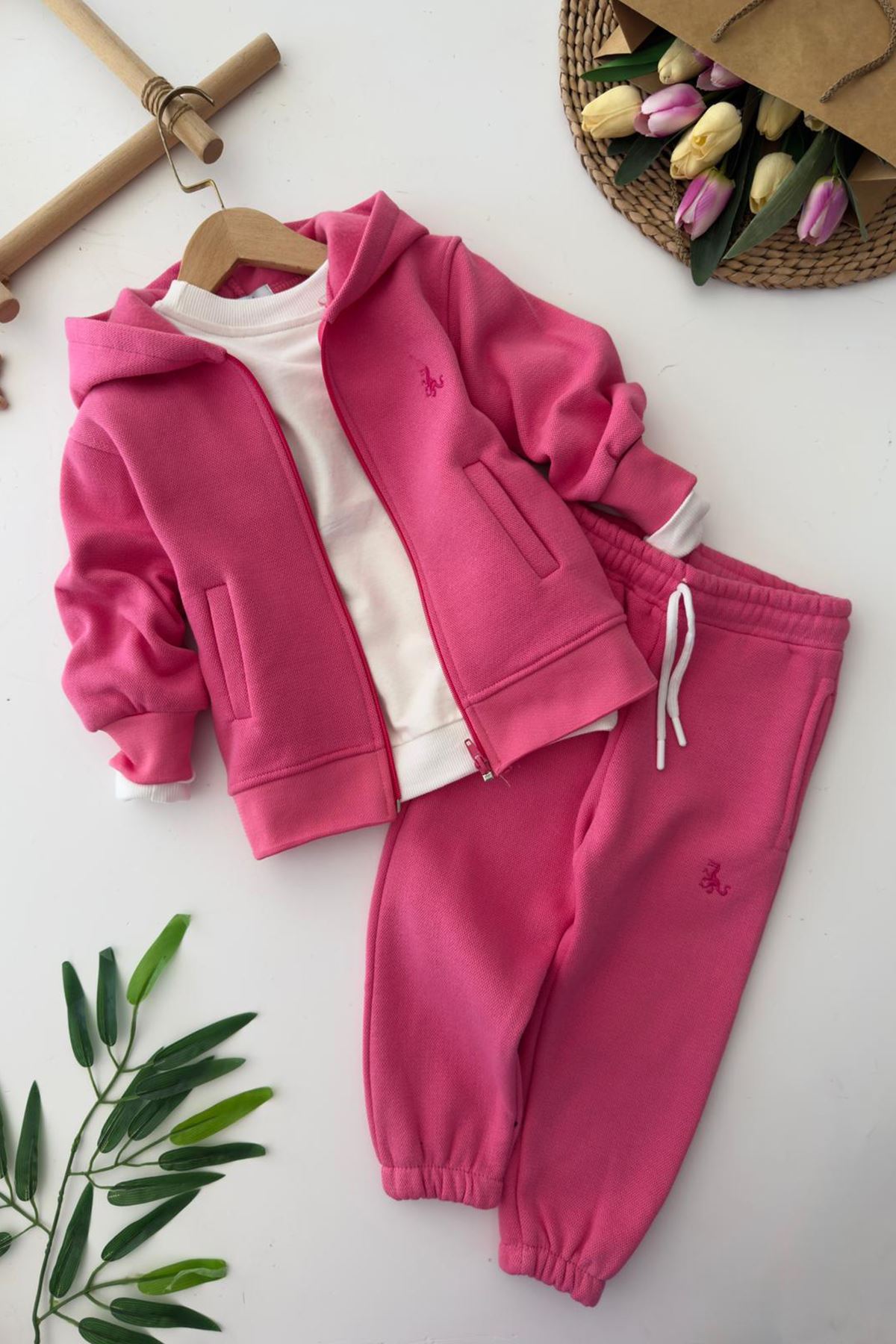 🌸 Kapüşonlu Fermuarlı 2’li Unisex Çocuk Kışlık Eşofman Takımı – 3 İp Şardonlu Kumaş