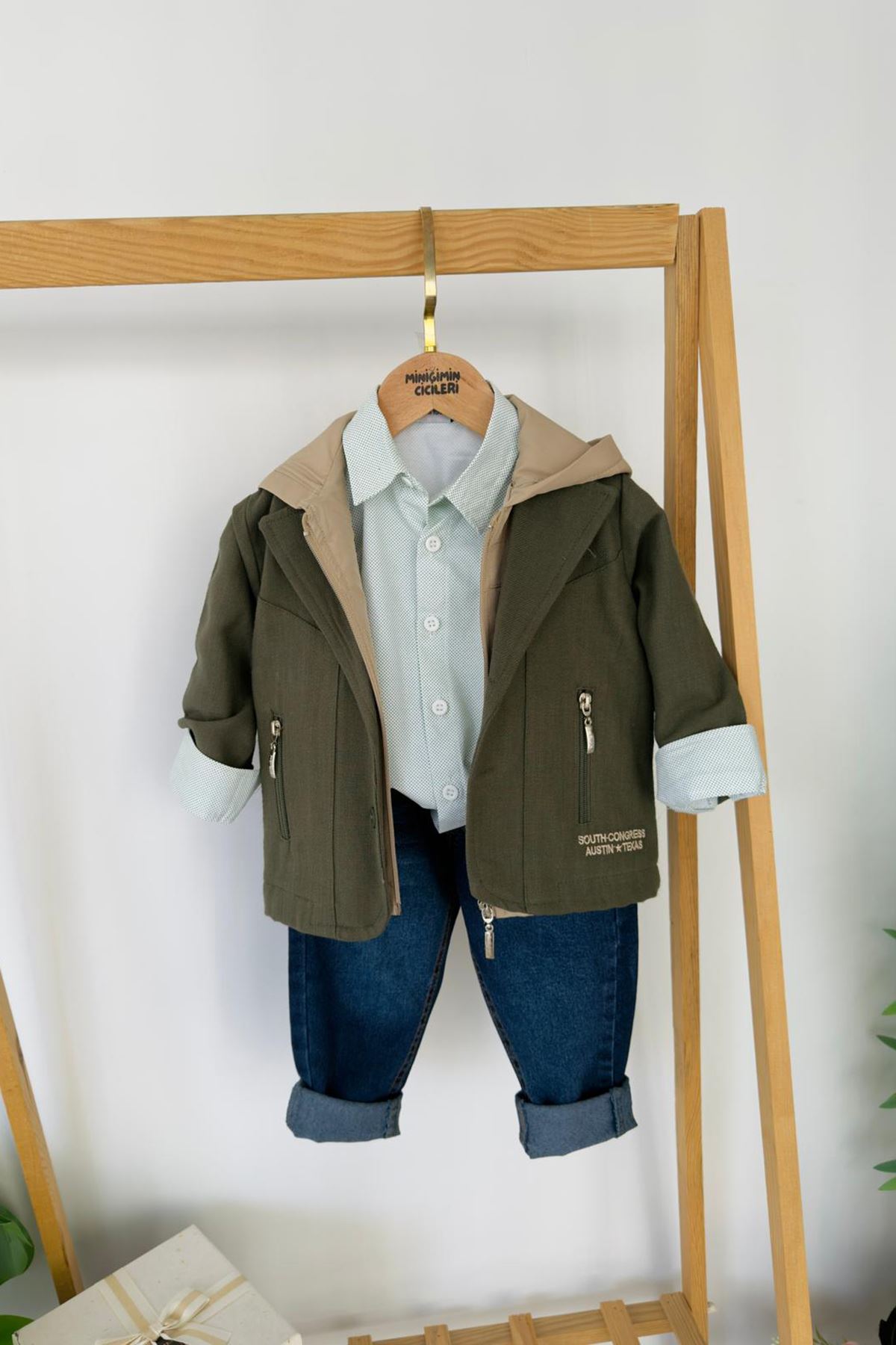 Miniğimin Cicileri Kapüşonlu Yelekli Ceketli Gömlek Jean 4’lü Erkek Çocuk Kombin - Yeşil