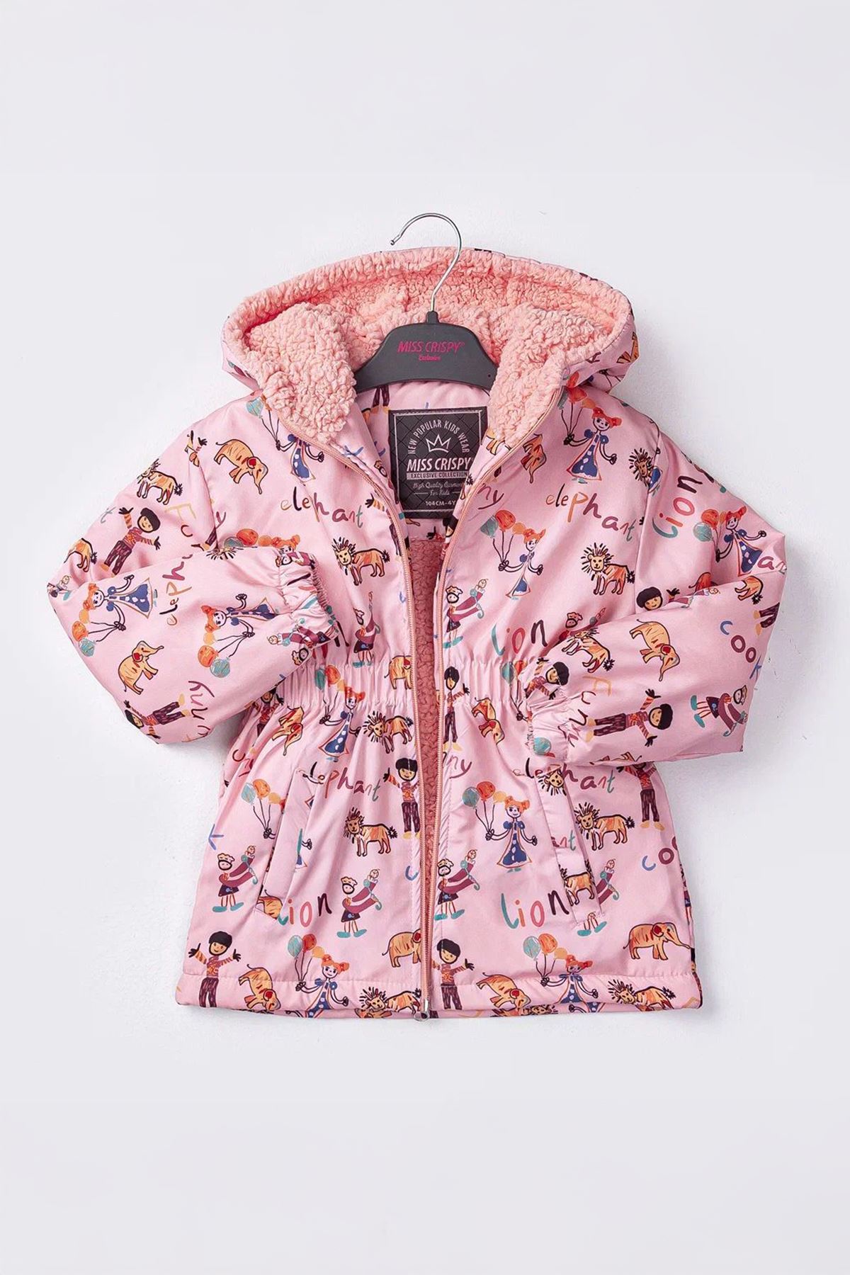 Minigimin Cicileri Karışık Lion Karakter Baskılı Kız Çocuk İçi Welsoft Mevsimlik Mont - Pembe