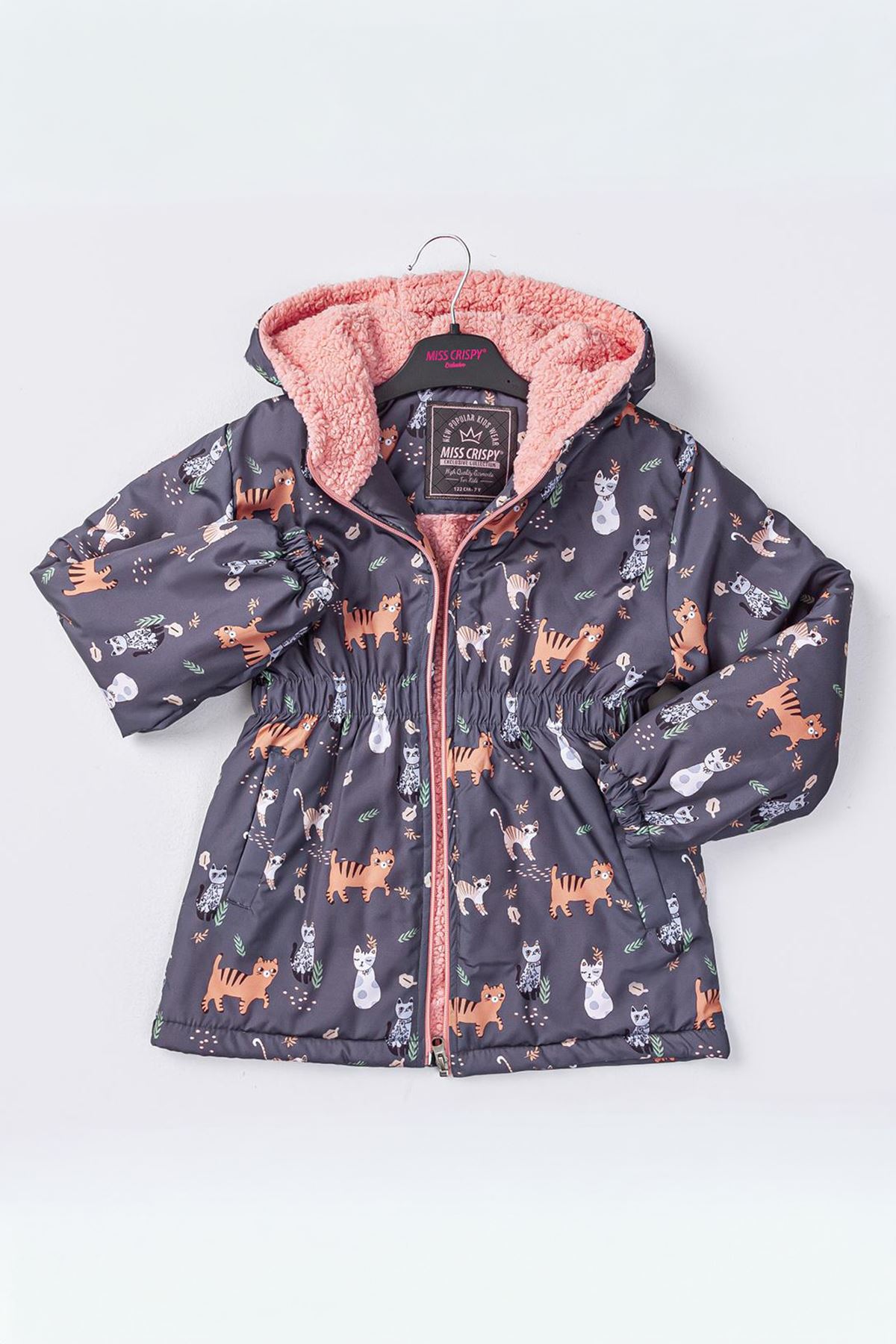 Miniğimin Cicileri Kedicik Karakter Baskılı Kız Çocuk İçi Welsoft Mevsimlik Mont - Antrasit